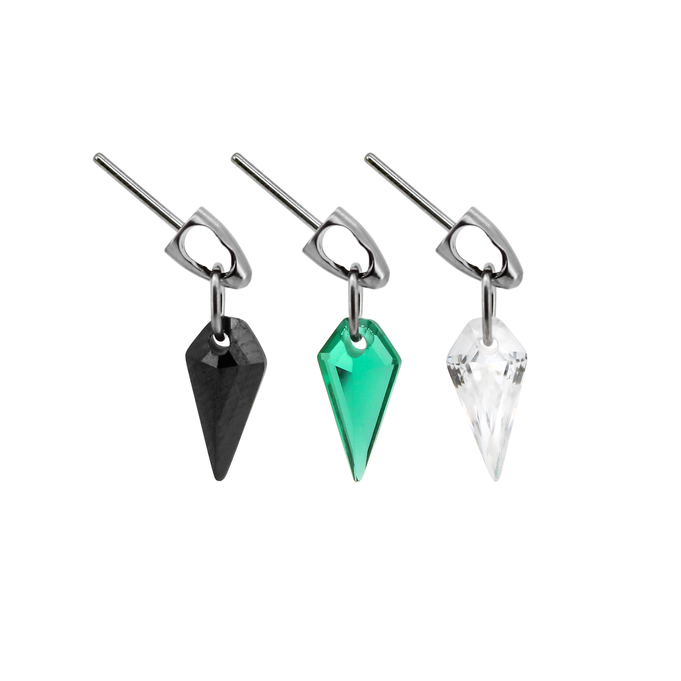 Gioiello in titanio con zircone a taglio "kite" (acquilone) pendente.