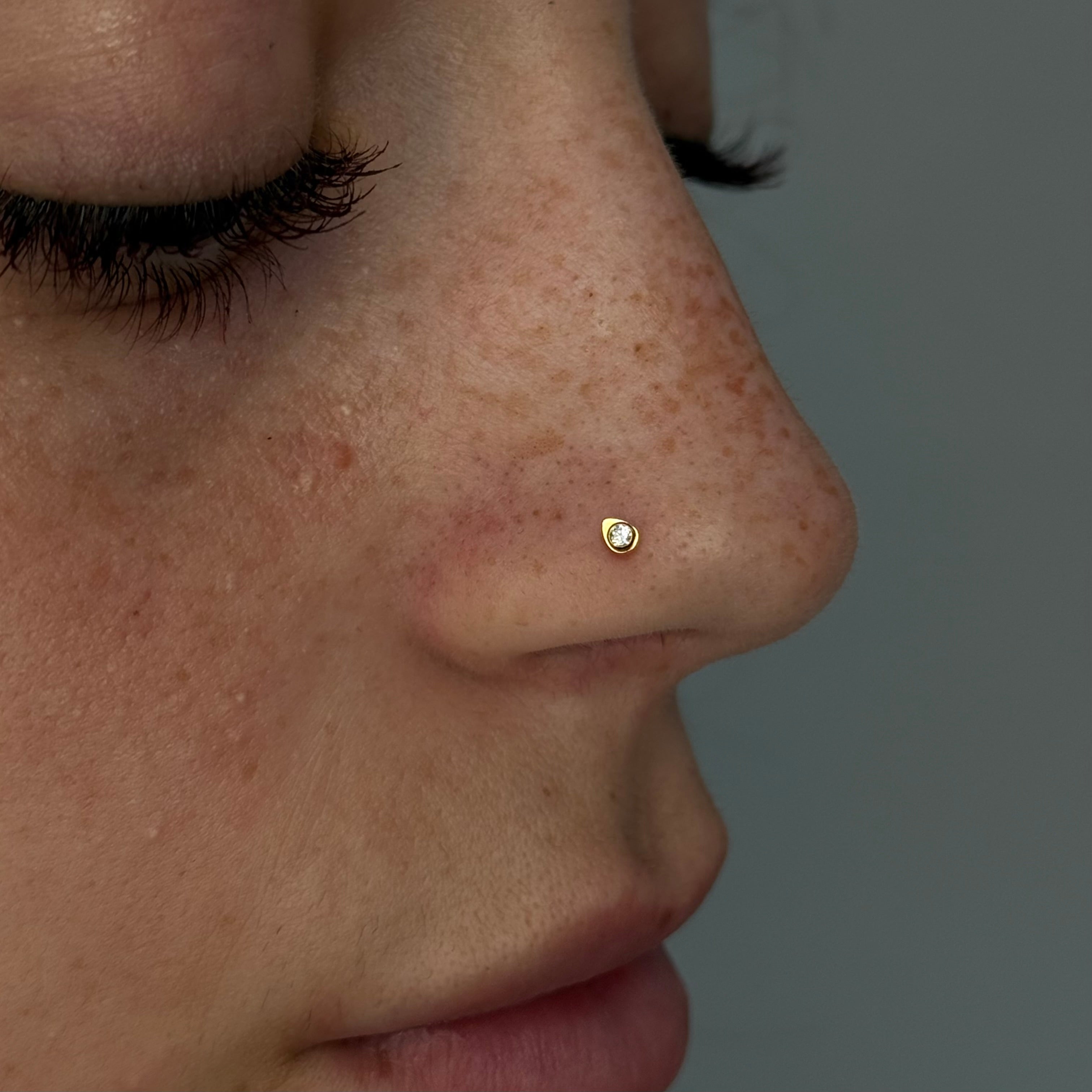 Dotata di una vite esterna, questa chiusura si avvita saldamente per mantenere il piercing ben fissato.