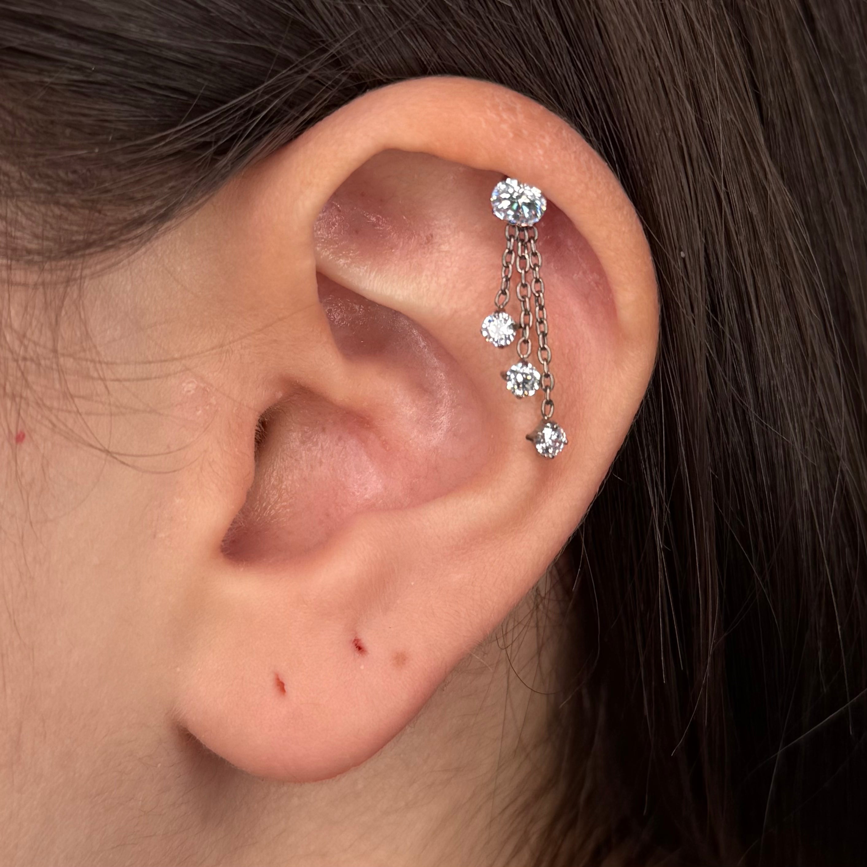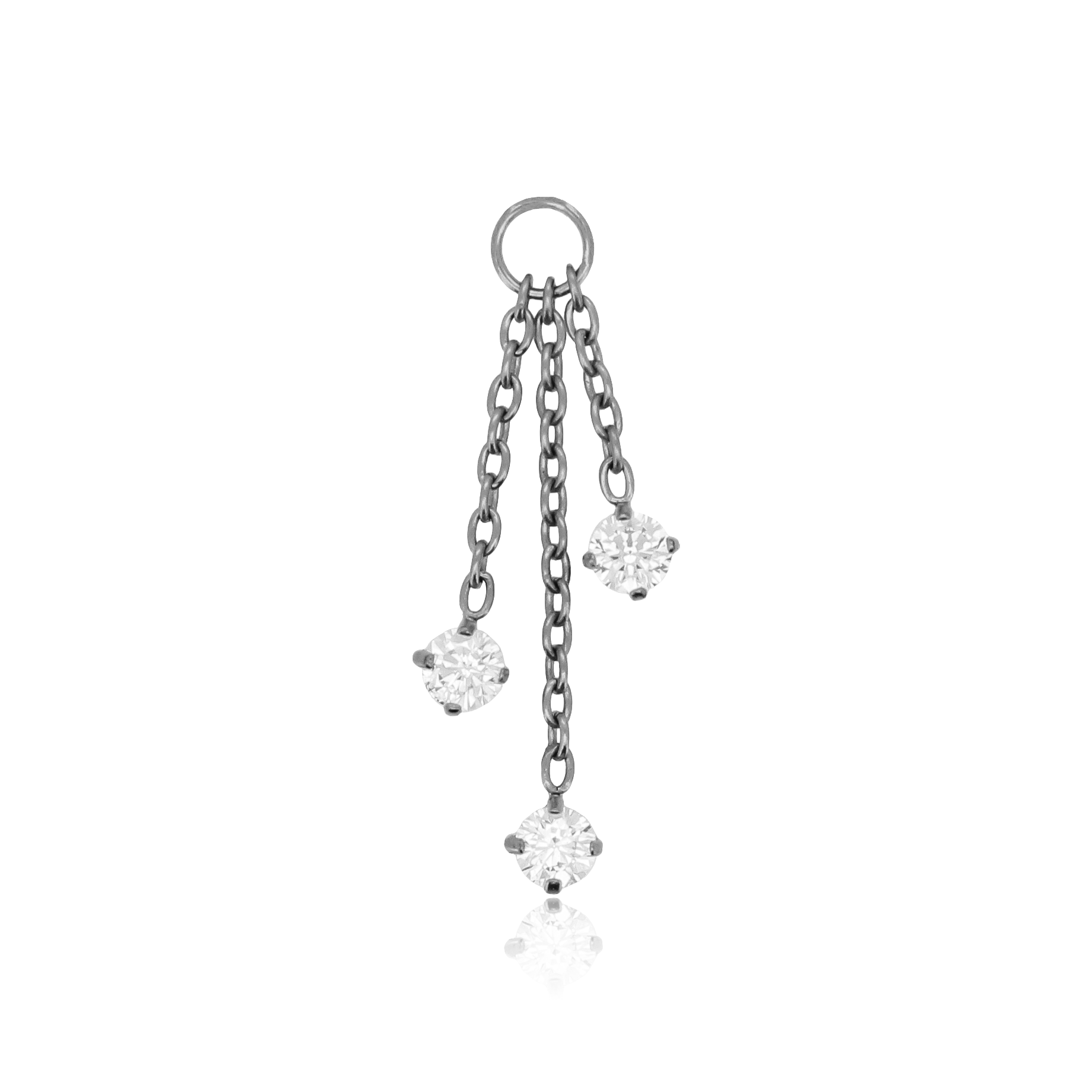 Charm in titanio con tre catene e tre dot cristallo pendenti.