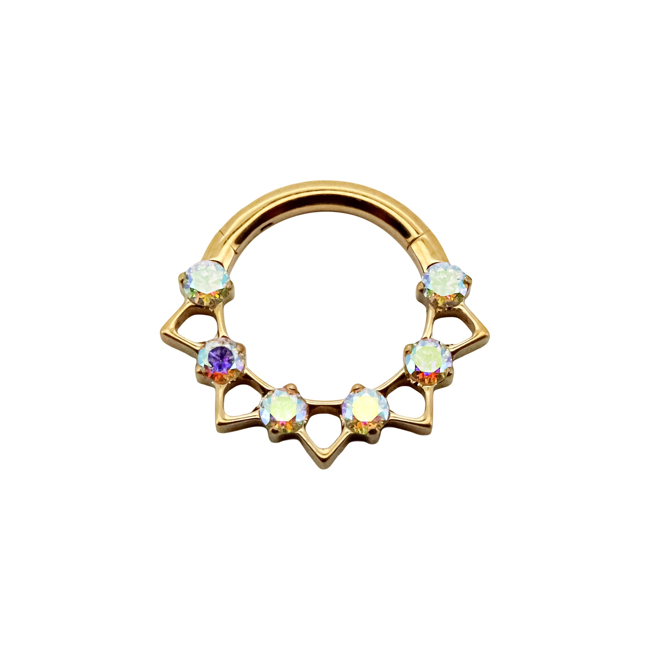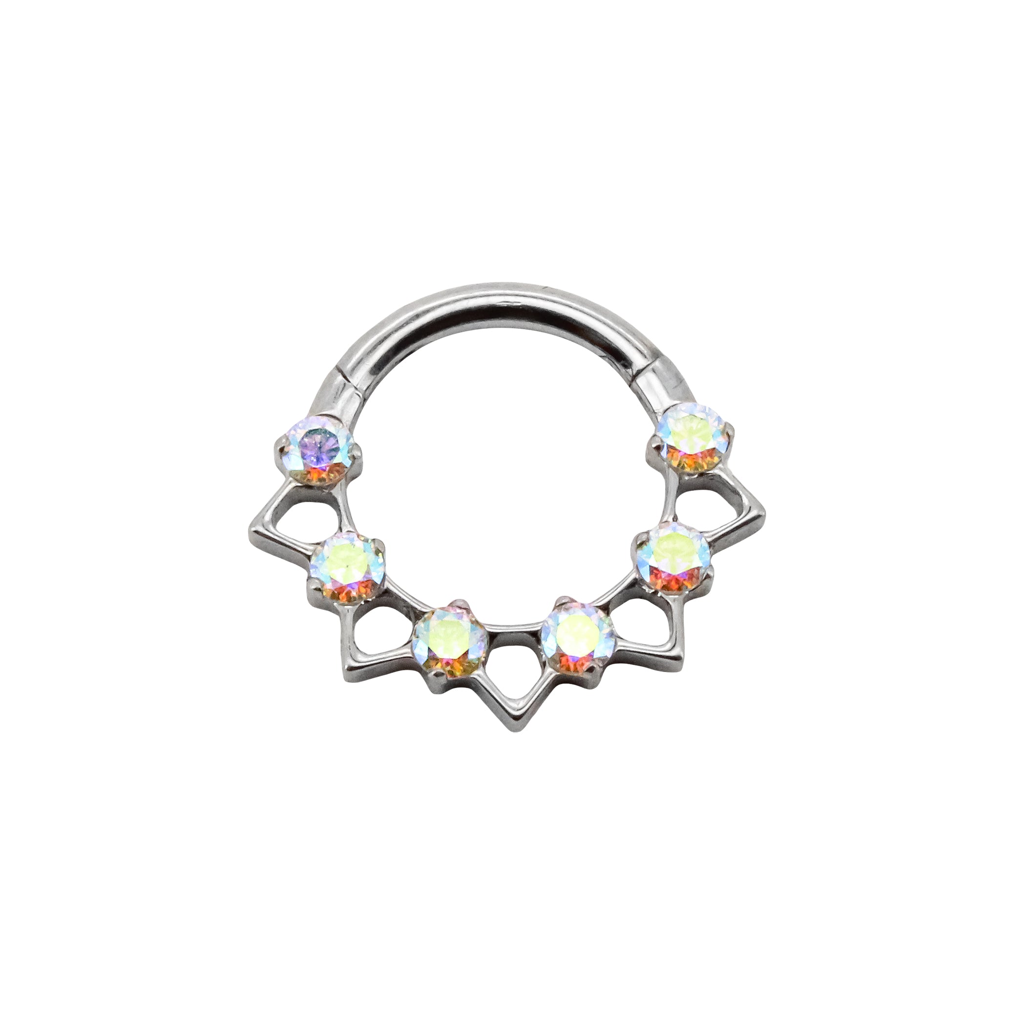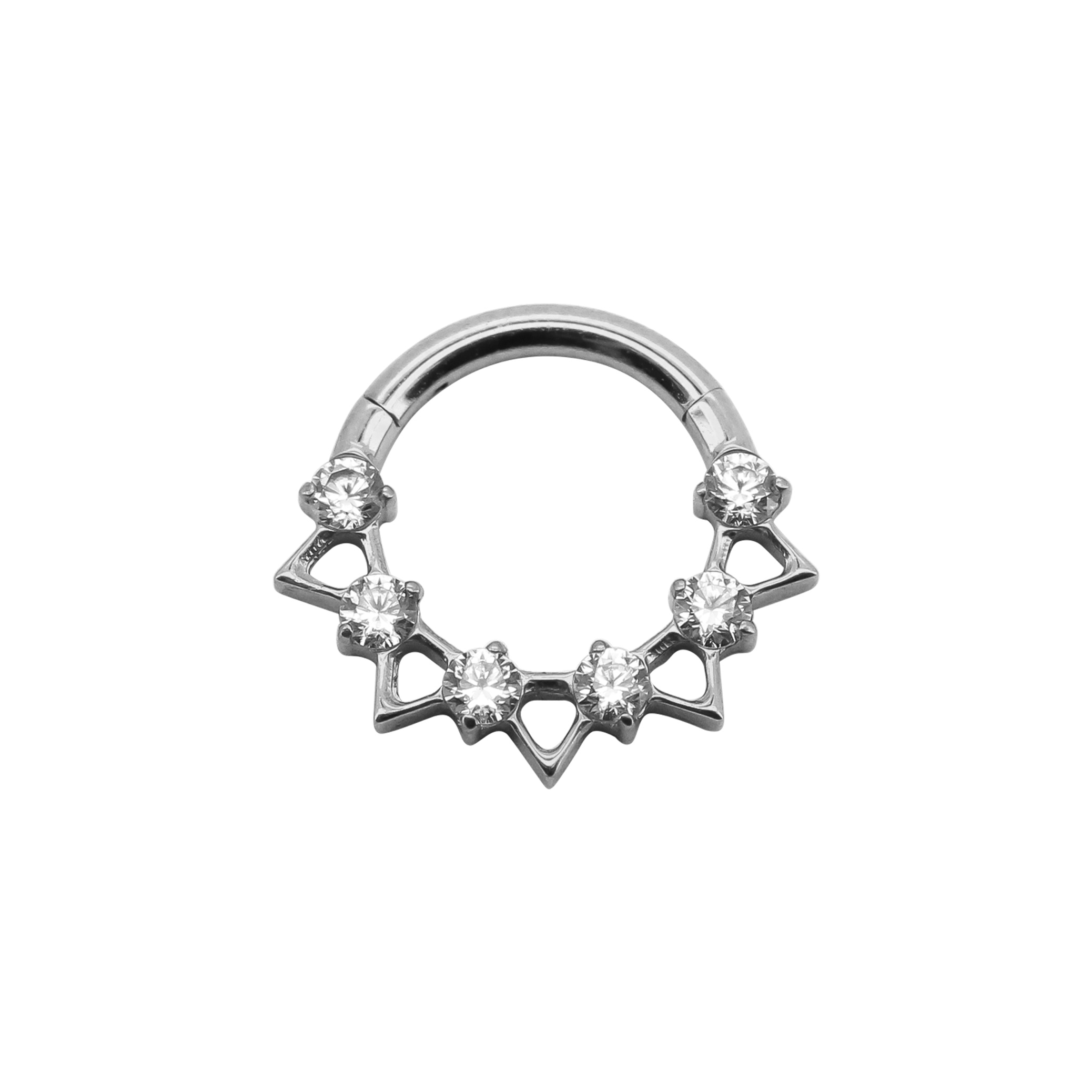 Clicker con lavorazione frontale geometrica alternata da zirconi tondi.