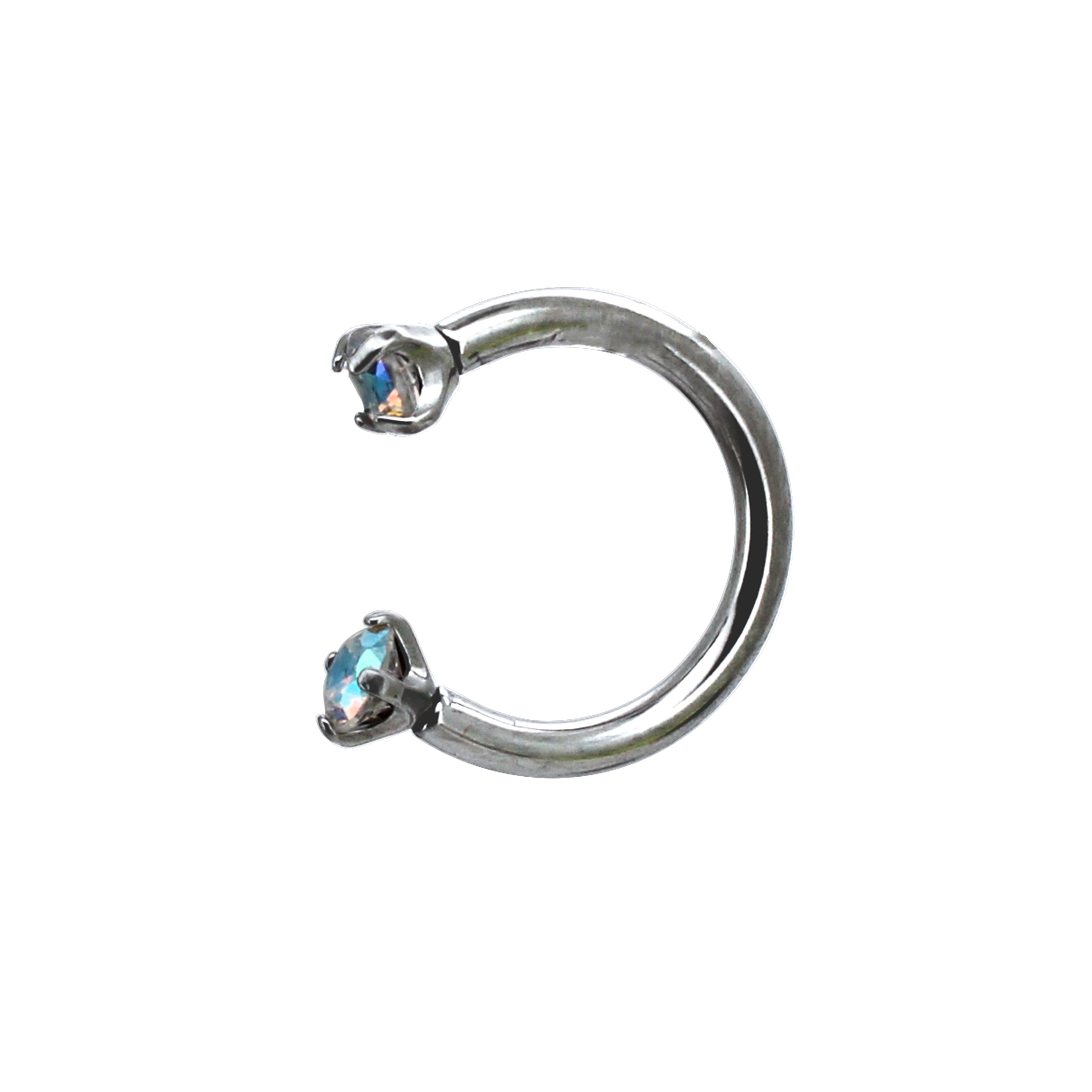 Ferro di cavallo con zirconi aurora boreale disponibili in diverse misure.