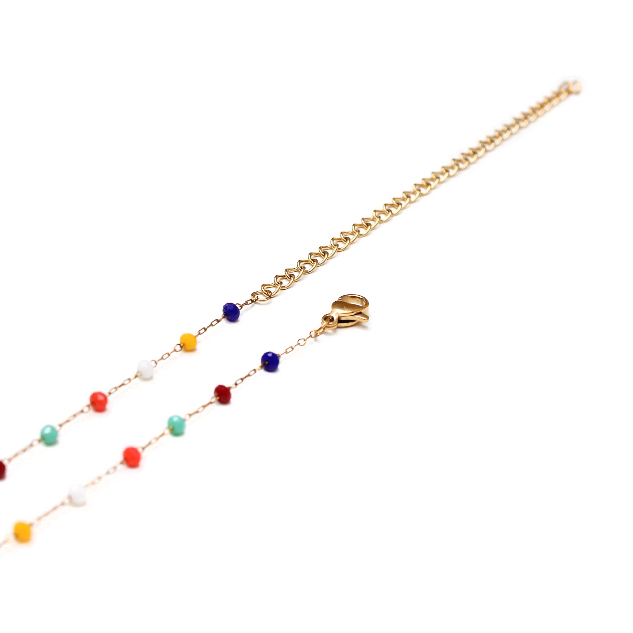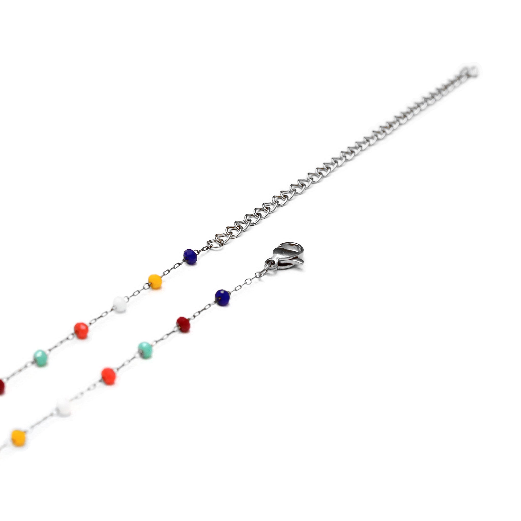 Catena in acciaio 316L è impreziosita da sei pietrine colorate che si ripetono lungo tutta la lunghezza, creando un gioco di riflessi vivaci e raffinati. Perfetta per dare personalità e originalità al tuo stile, ogni giorno.