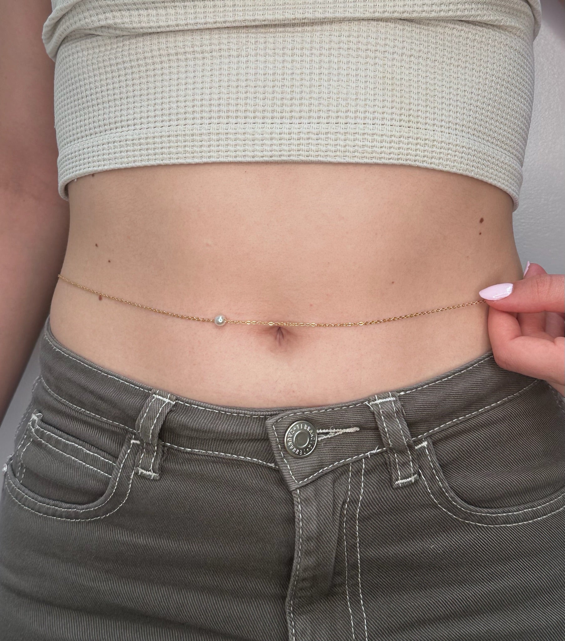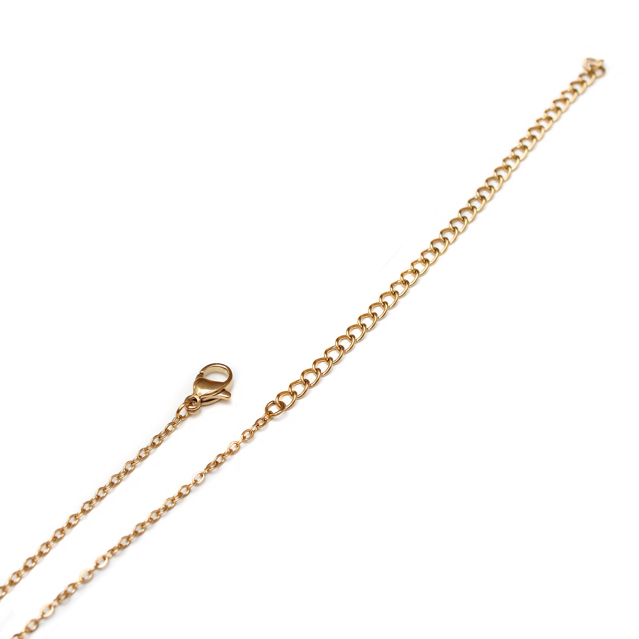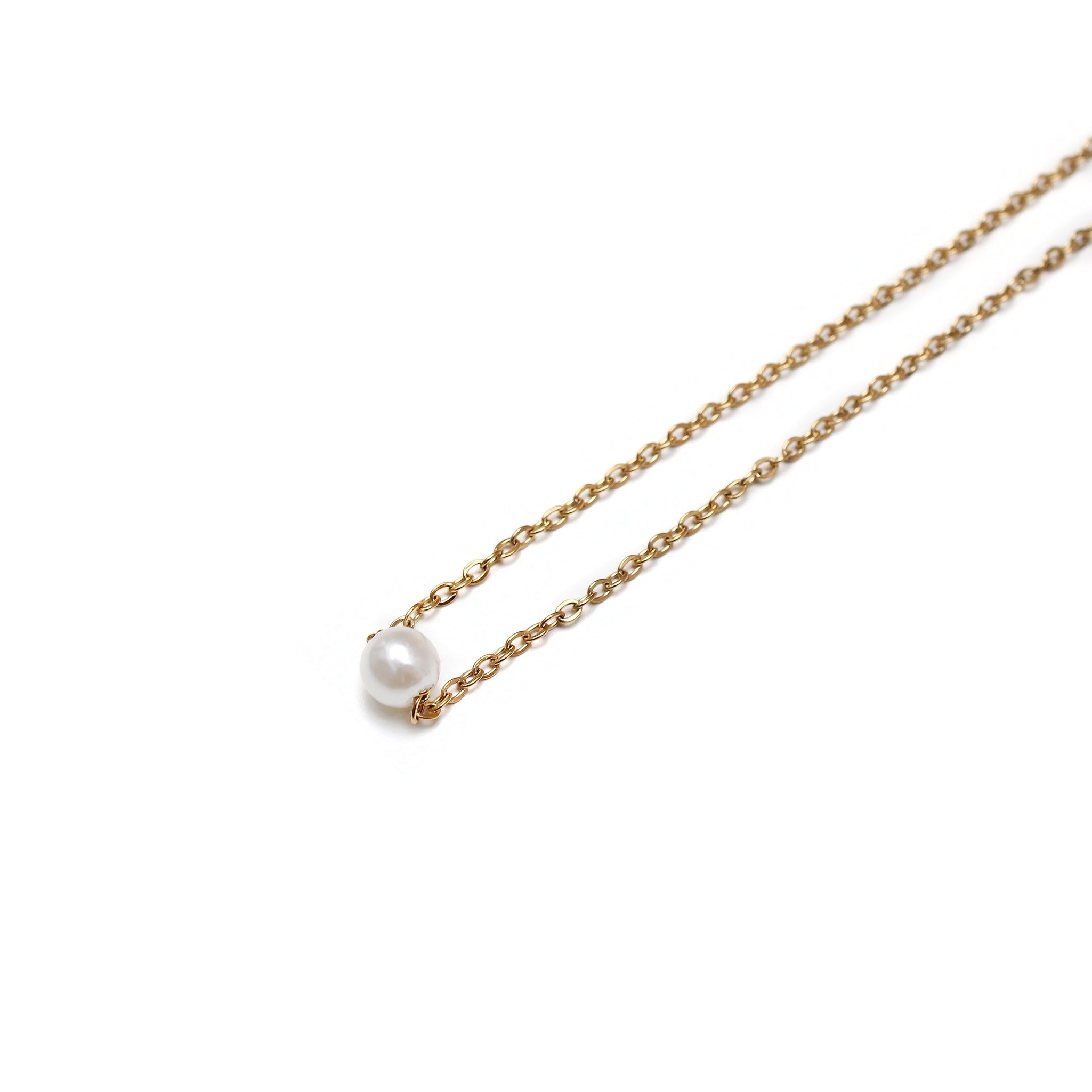 Catena in acciaio 316L composta da una semplice maglia liscia ma arricchita da una perla bianca al centro della catena, un dettaglio raffinato che illumina il look con delicatezza e stile.