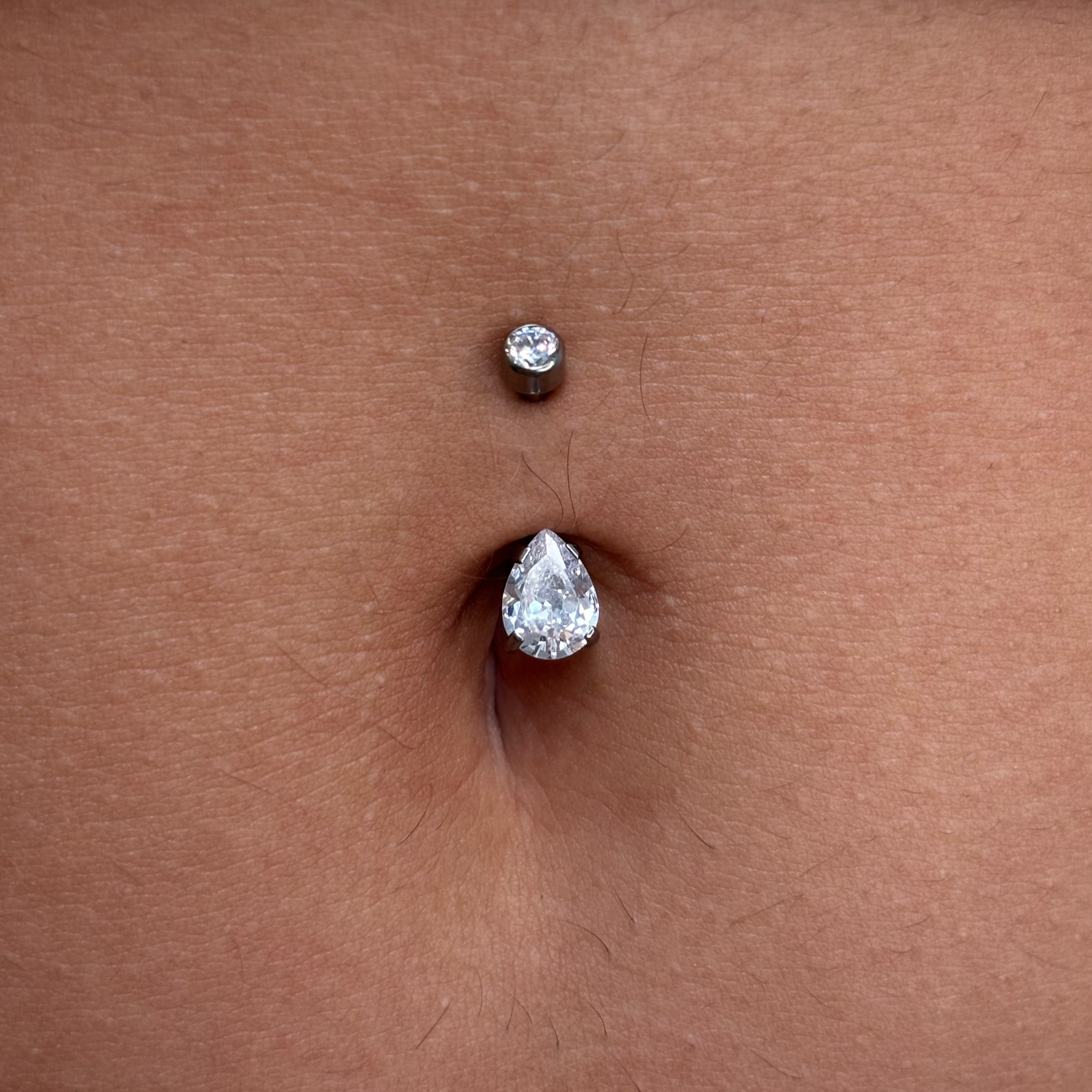 Gioiello per ombelico, con cristallo a forma di goccia, disponibile in tre varianti colore.
