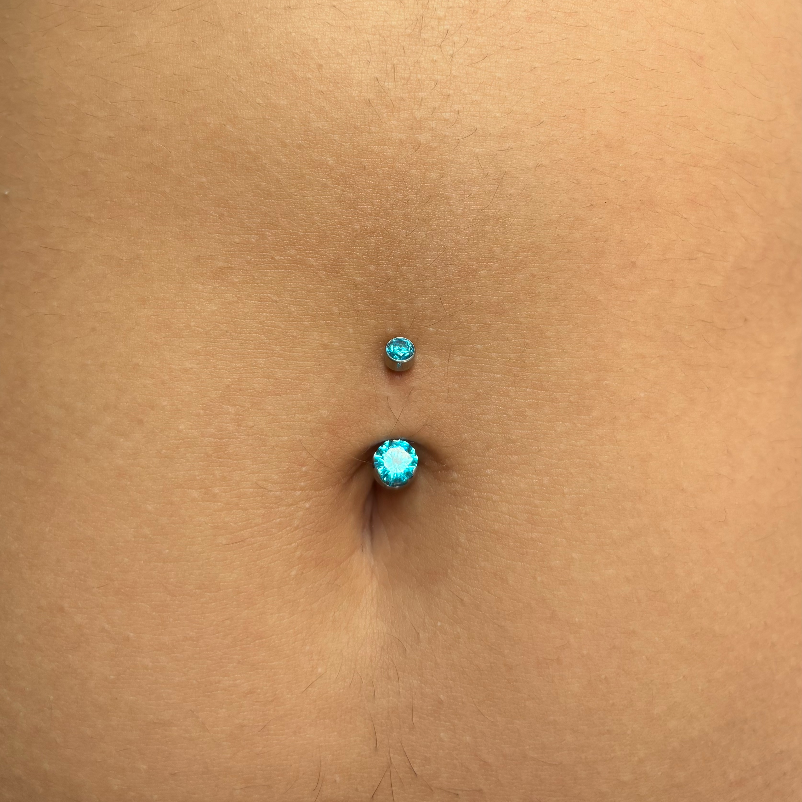 Gioiello per ombelico con gemma inferiore tondeggiante.