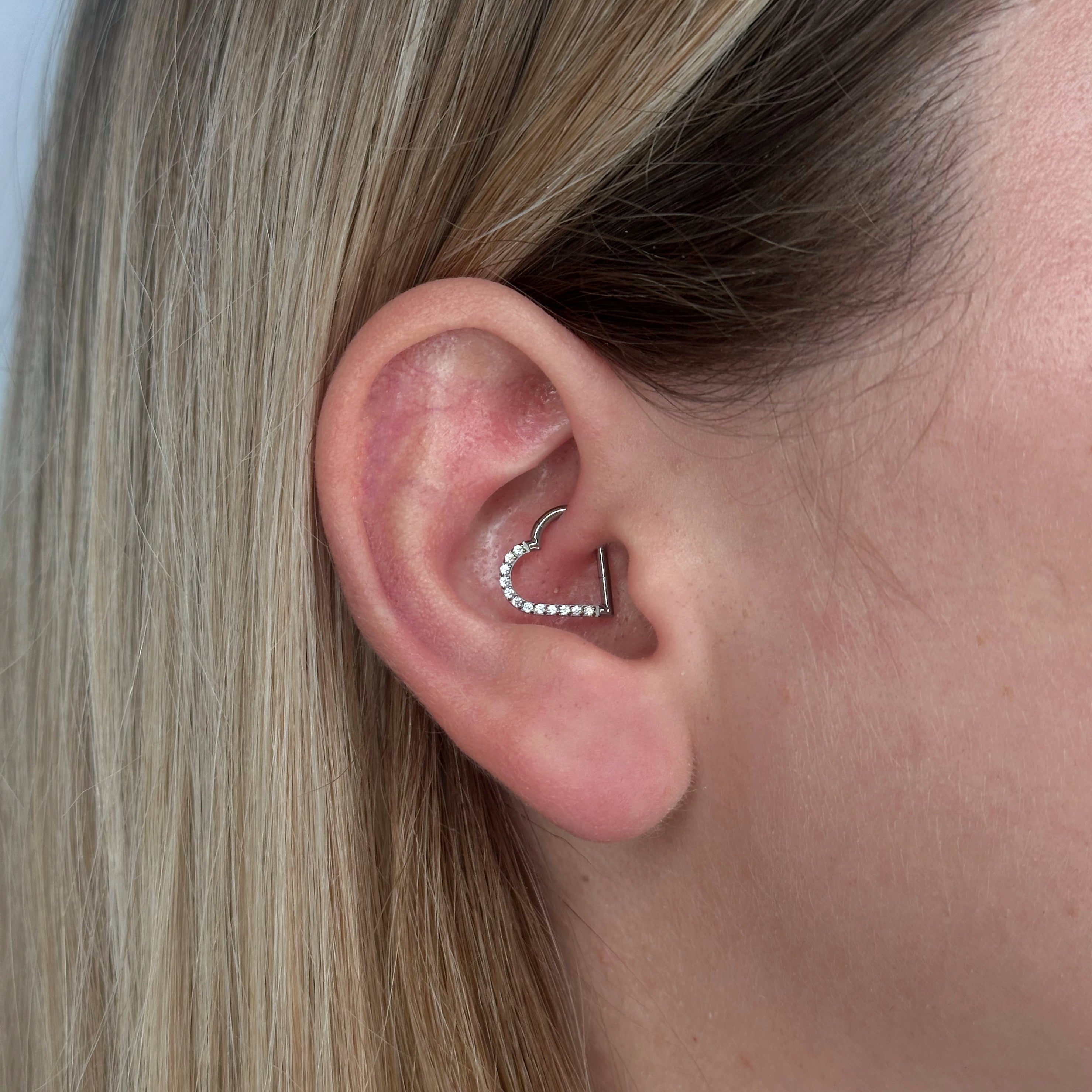 Anna indossa Bright heart clicker da 10 mm su orecchio destro.