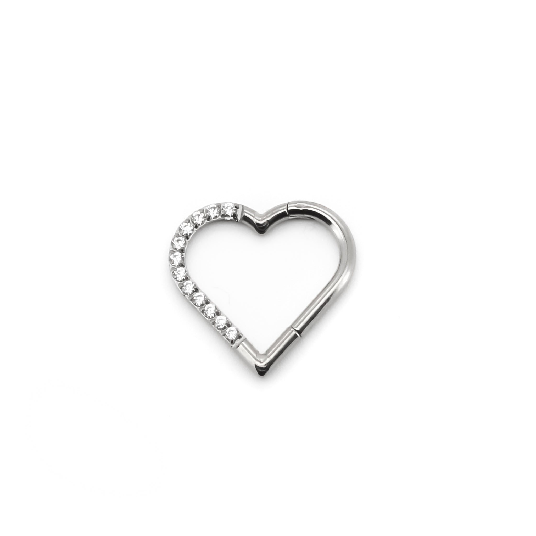 Clicker a forma di cuore con decorazione frontale di zirconi cristallo.