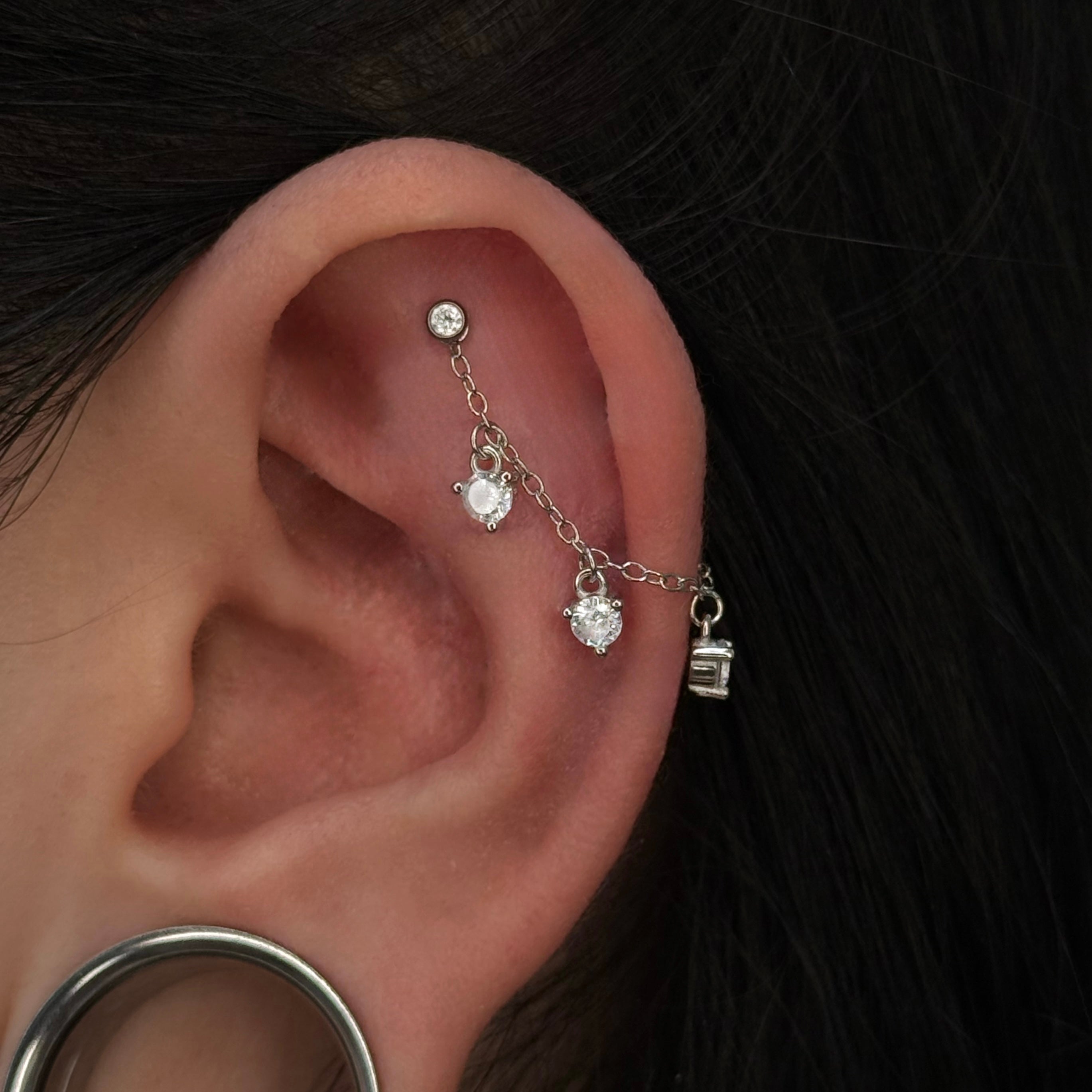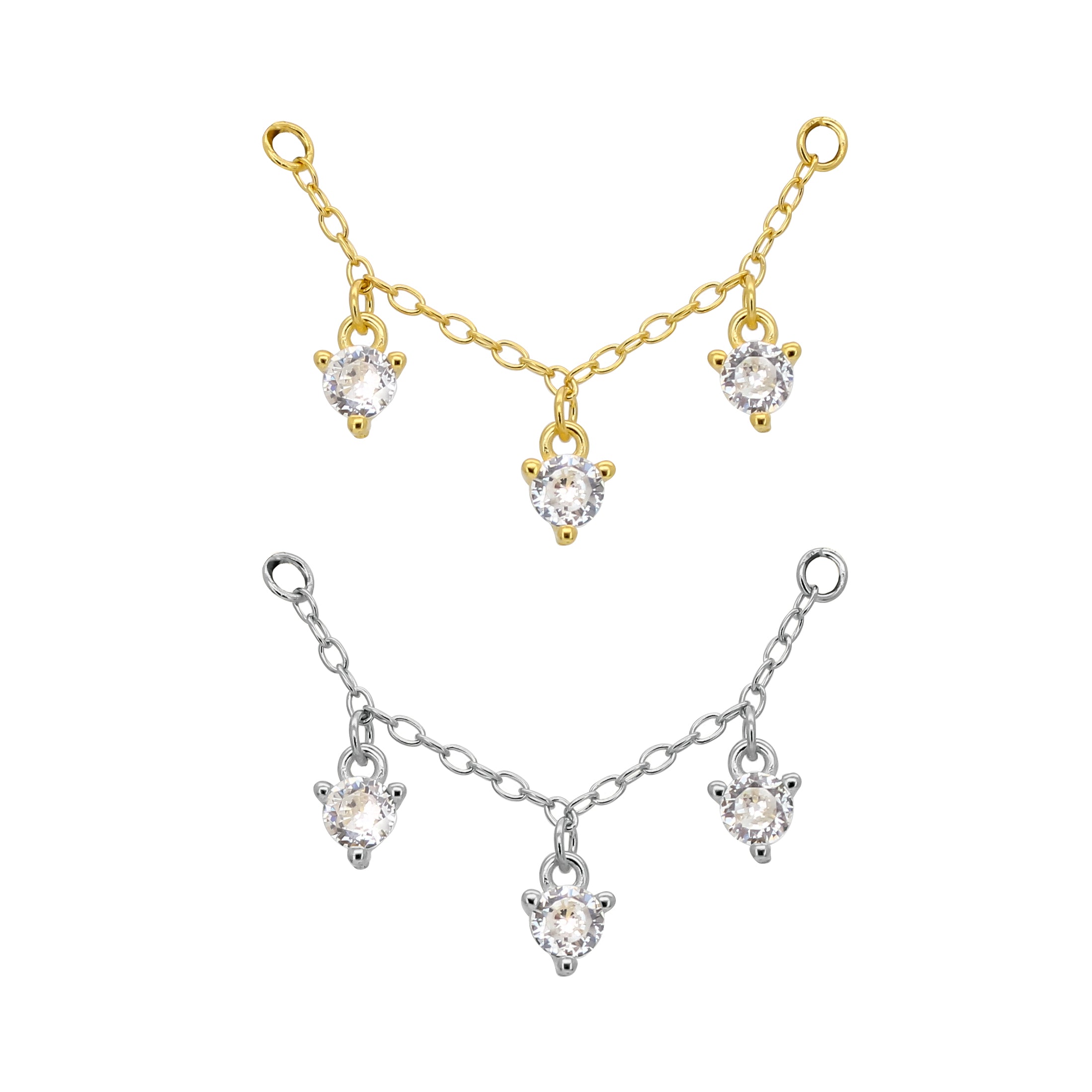 Chain con zirconi pendenti adatta a due fori in Argento 925 e Argento 925 placcato oro 18kt.