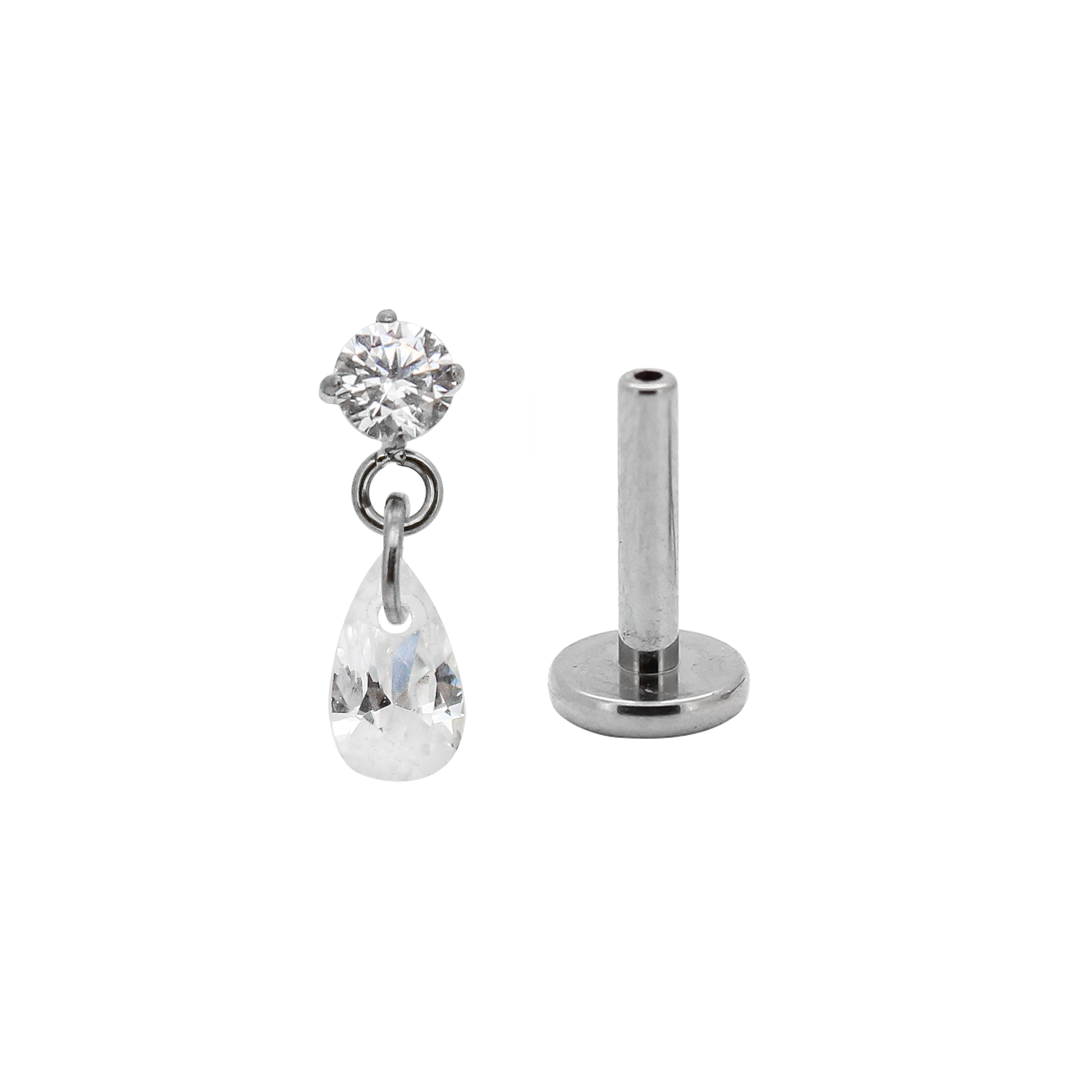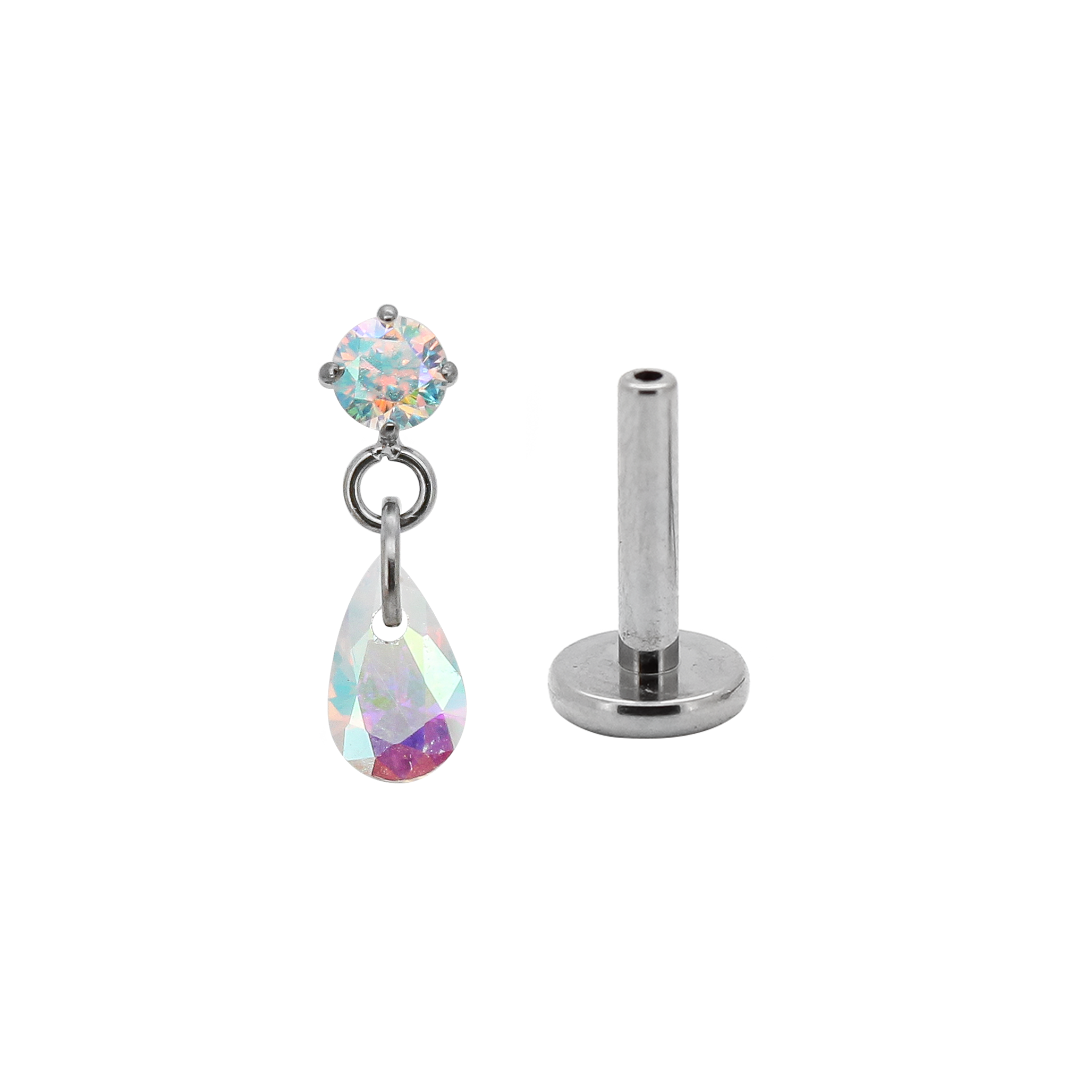Gioiello con zircone e goccia in cristallo pendente.