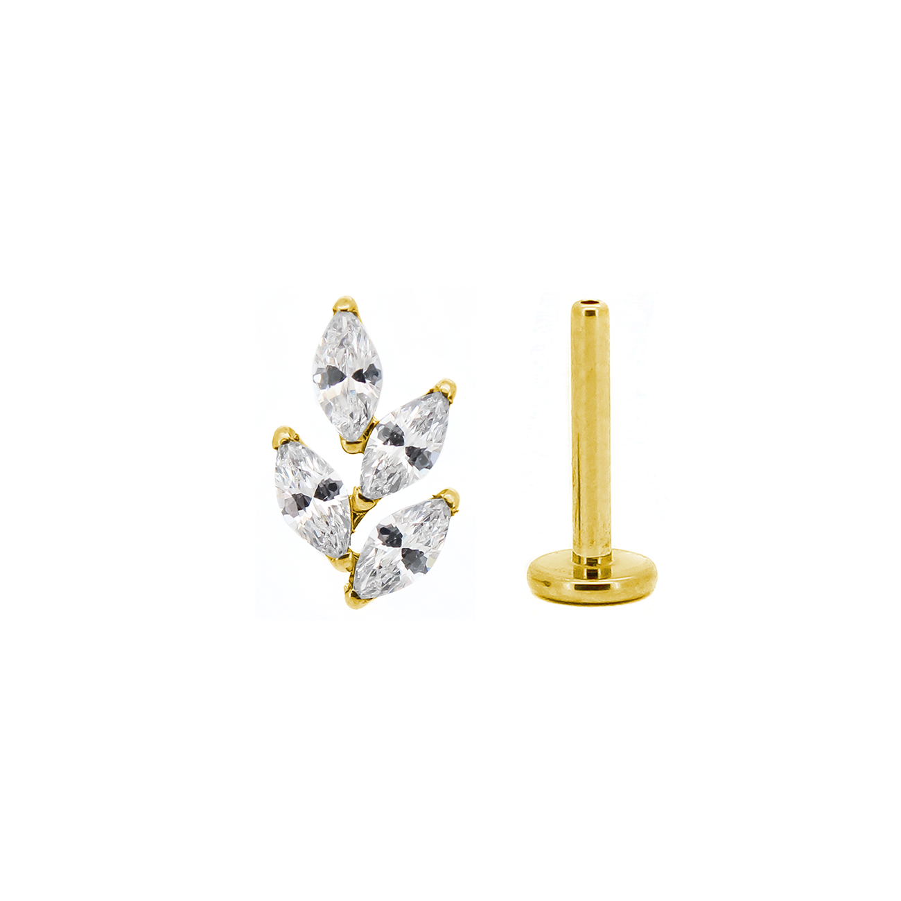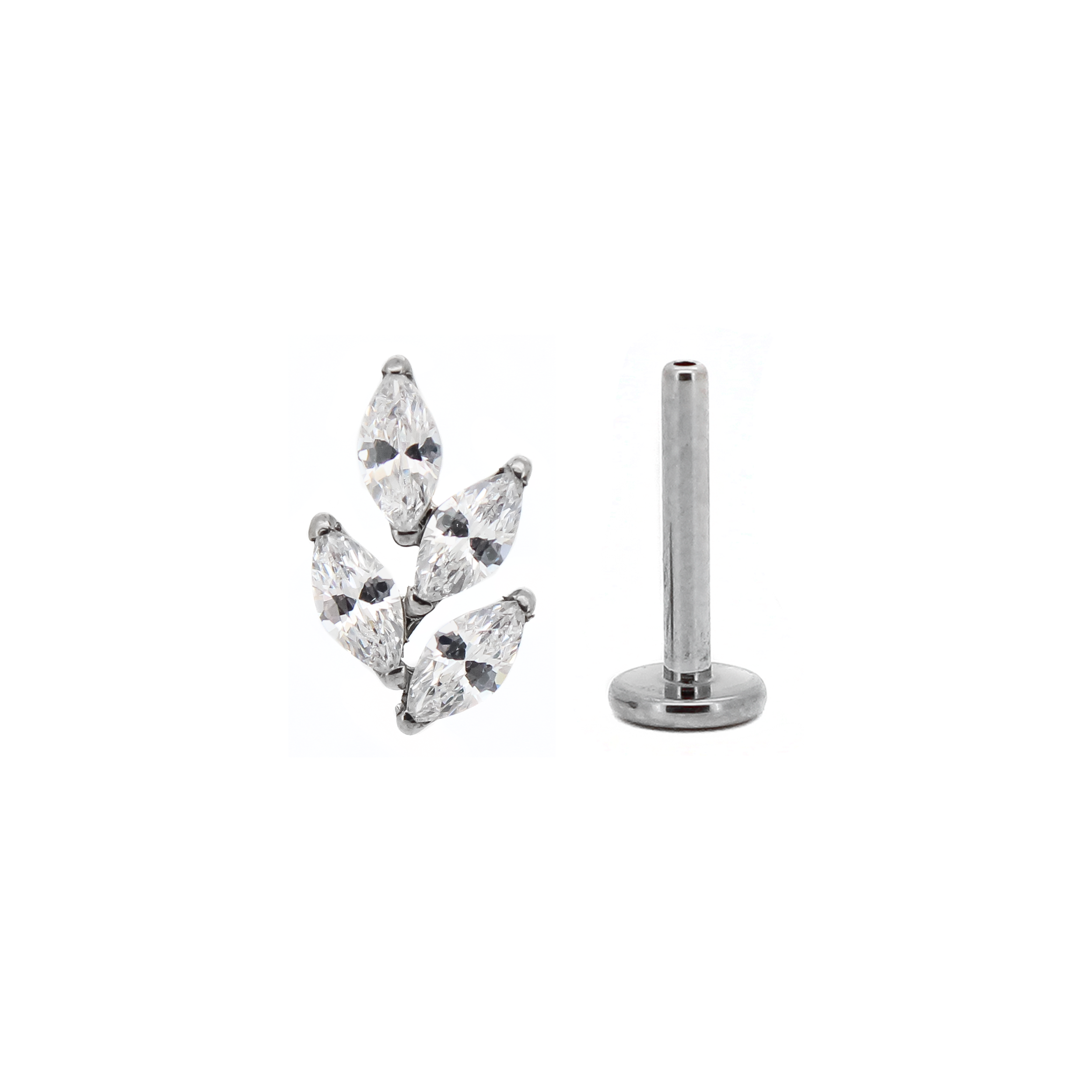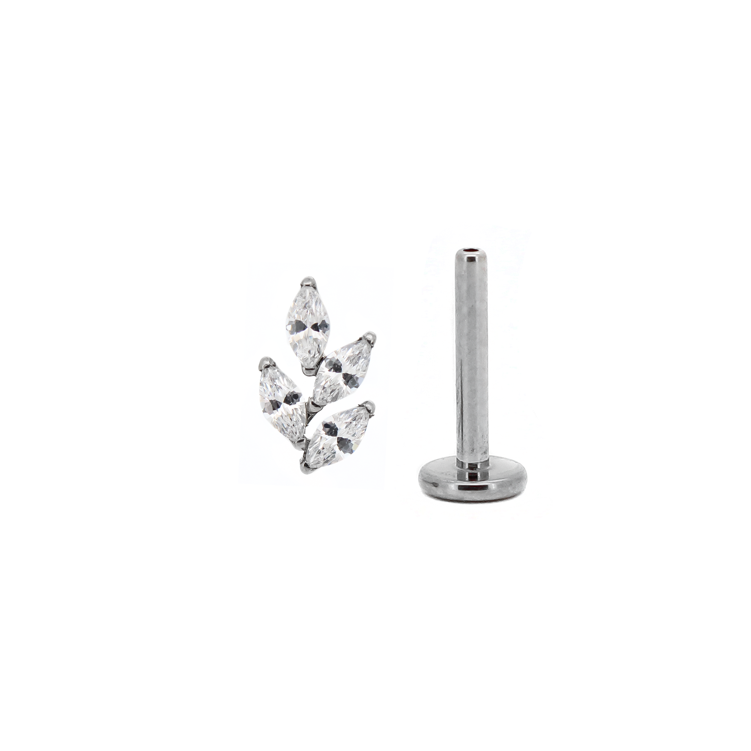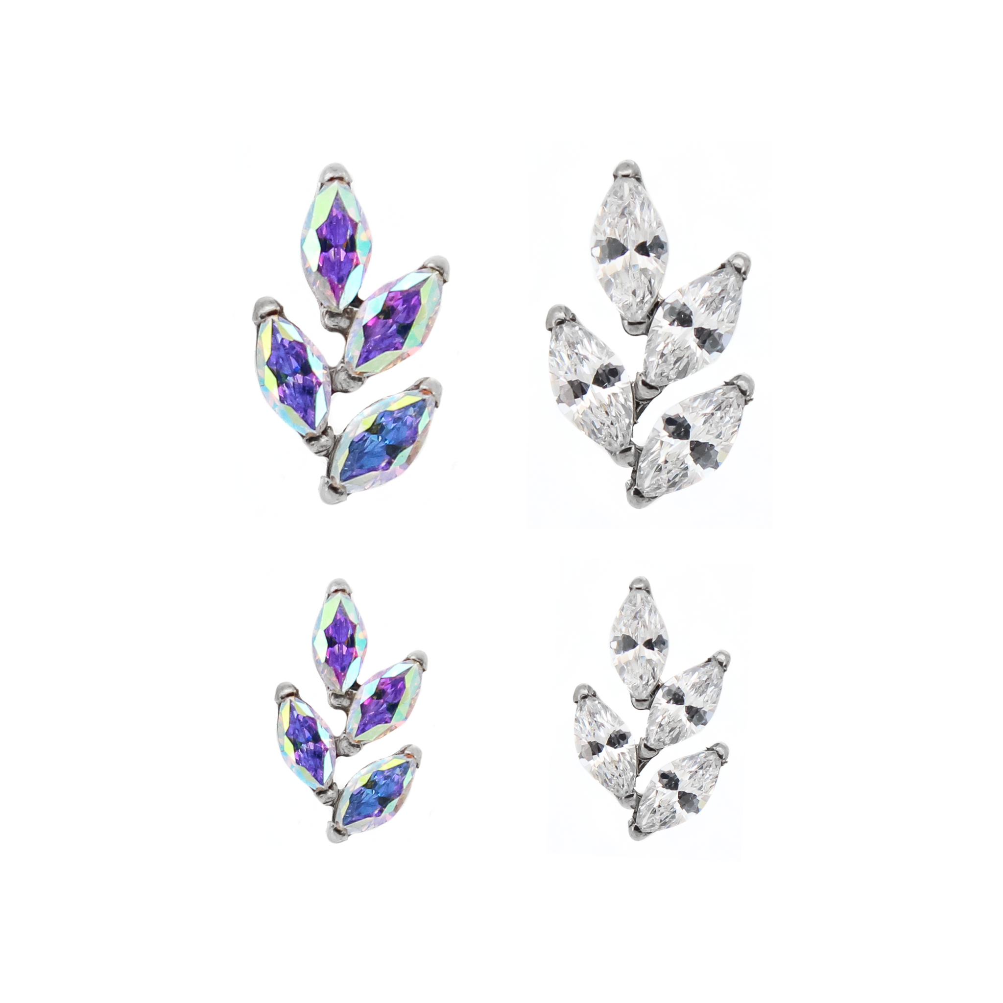 Gioiello a forma di foglia con 4 pietre cristallo.