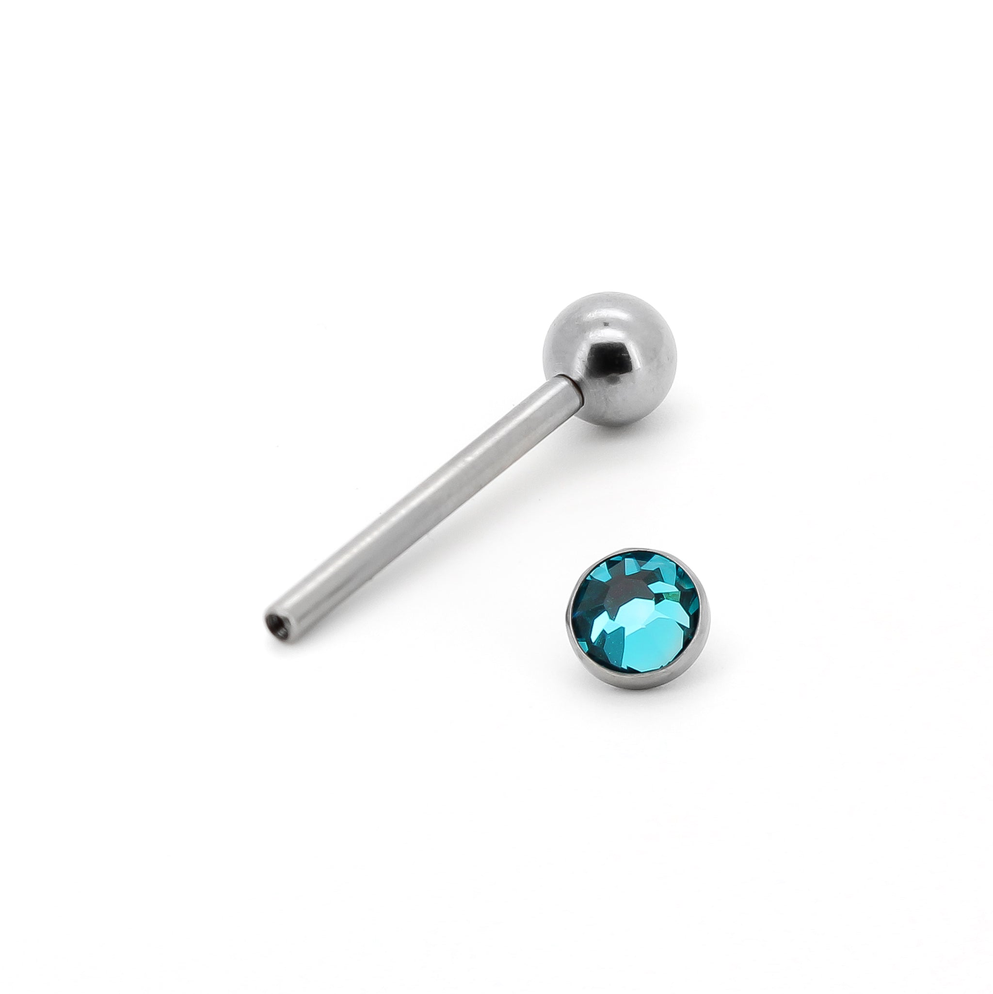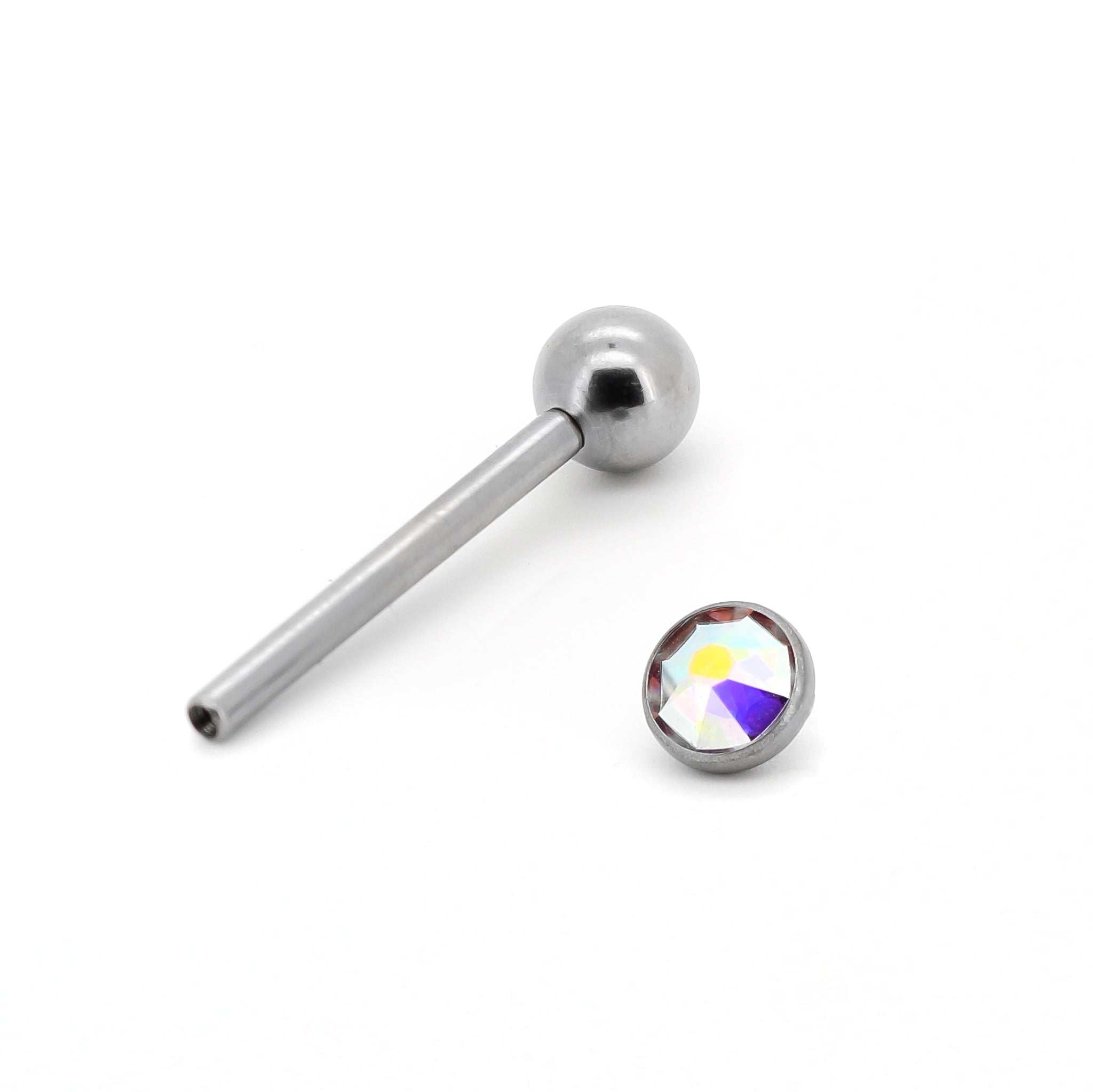 Piercing per lingua con top in cristallo disponibile in diverse colorazioni.