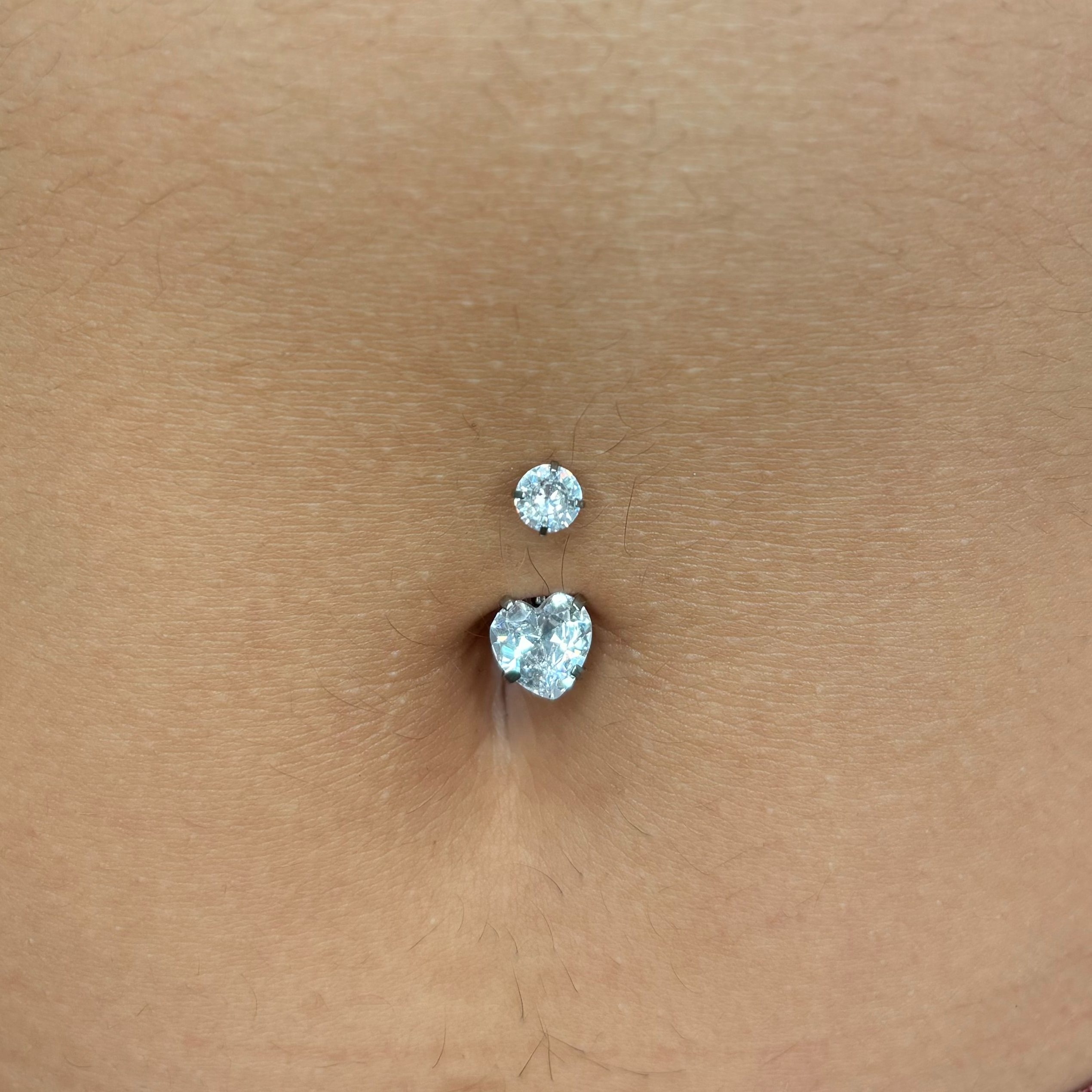 Gioiello per ombelico, con cristallo bianco a forma di cuore.
