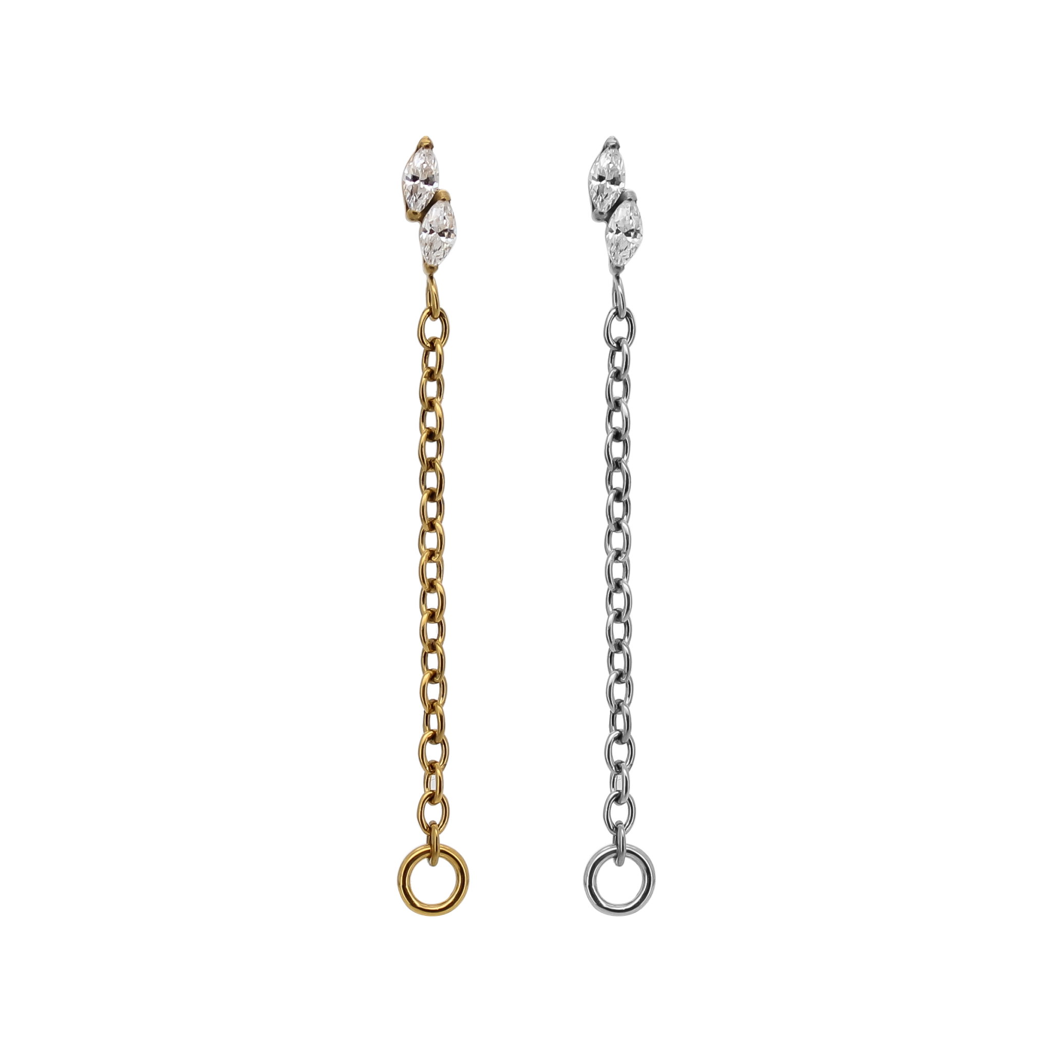 Gioiello con terminale con due marquise e catena con occhiello pendente.