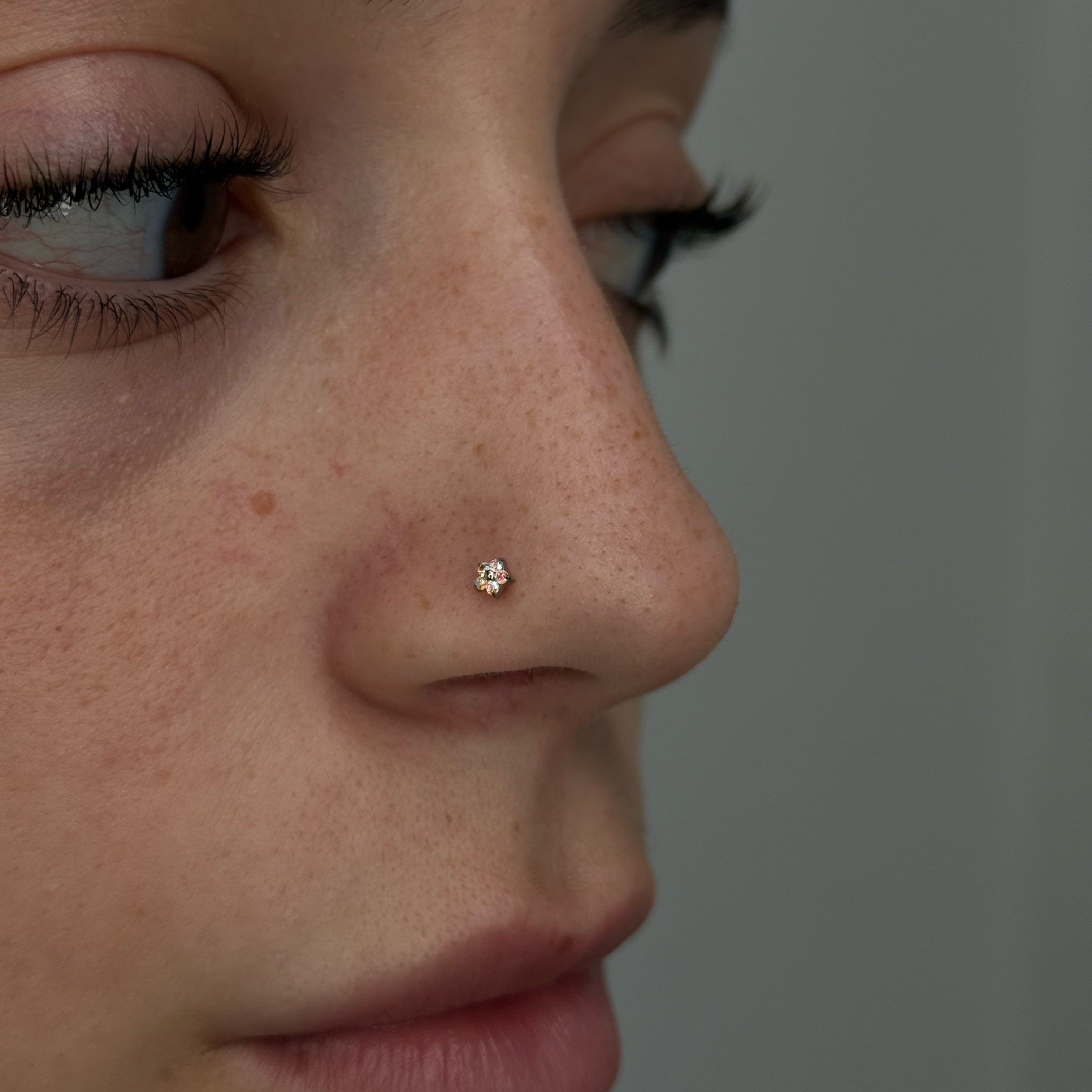 Dotata di una vite esterna, questa chiusura si avvita saldamente per mantenere il piercing ben fissato.