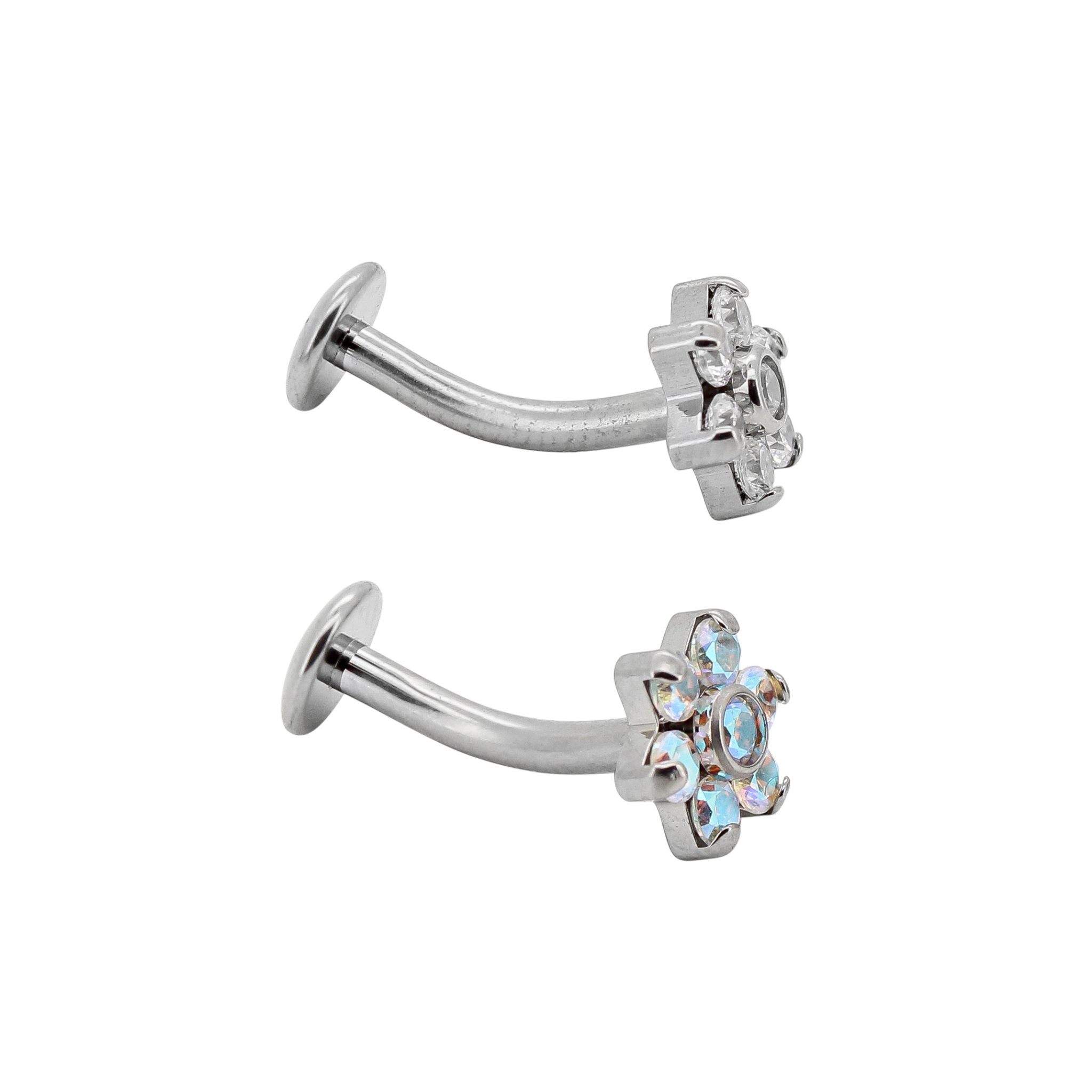 Floating navel a forma di fiore cristallo o aurora boreale con terminale fisso e piattello rimovibile.