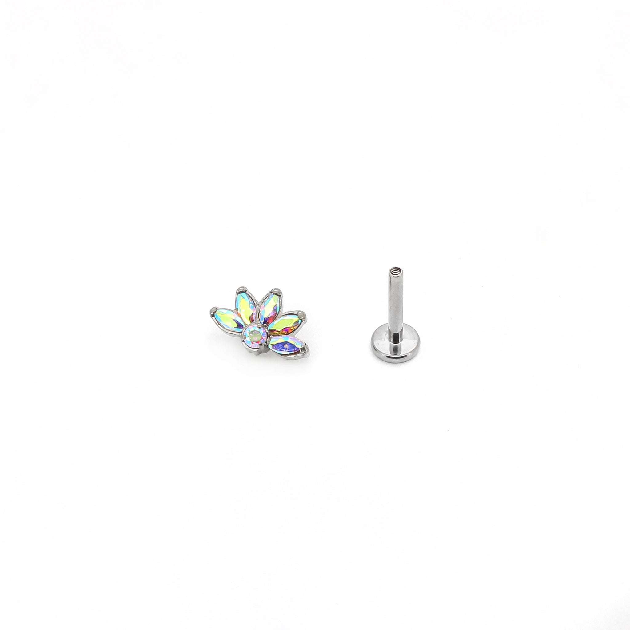 Gioiello in diversi colori a forma di mezzo fiore con 5 marquise e uno zircone.