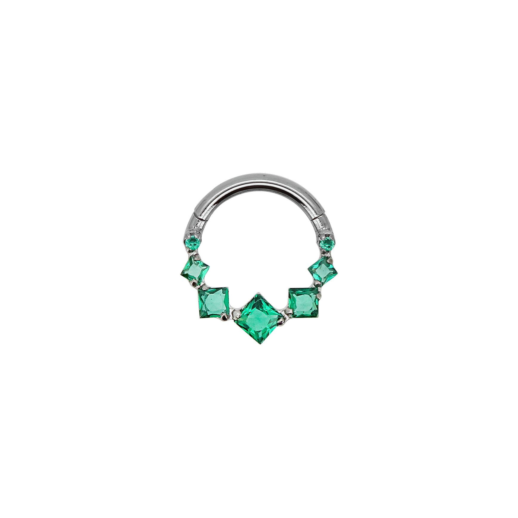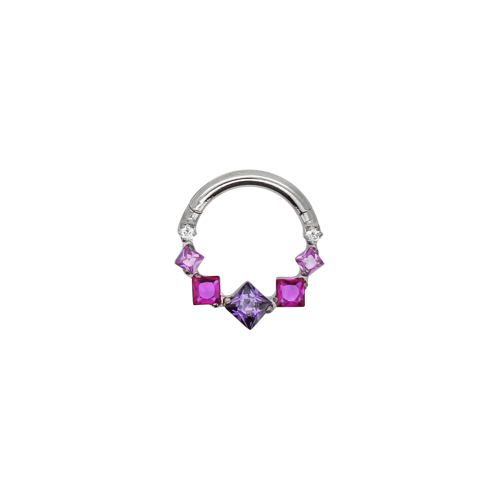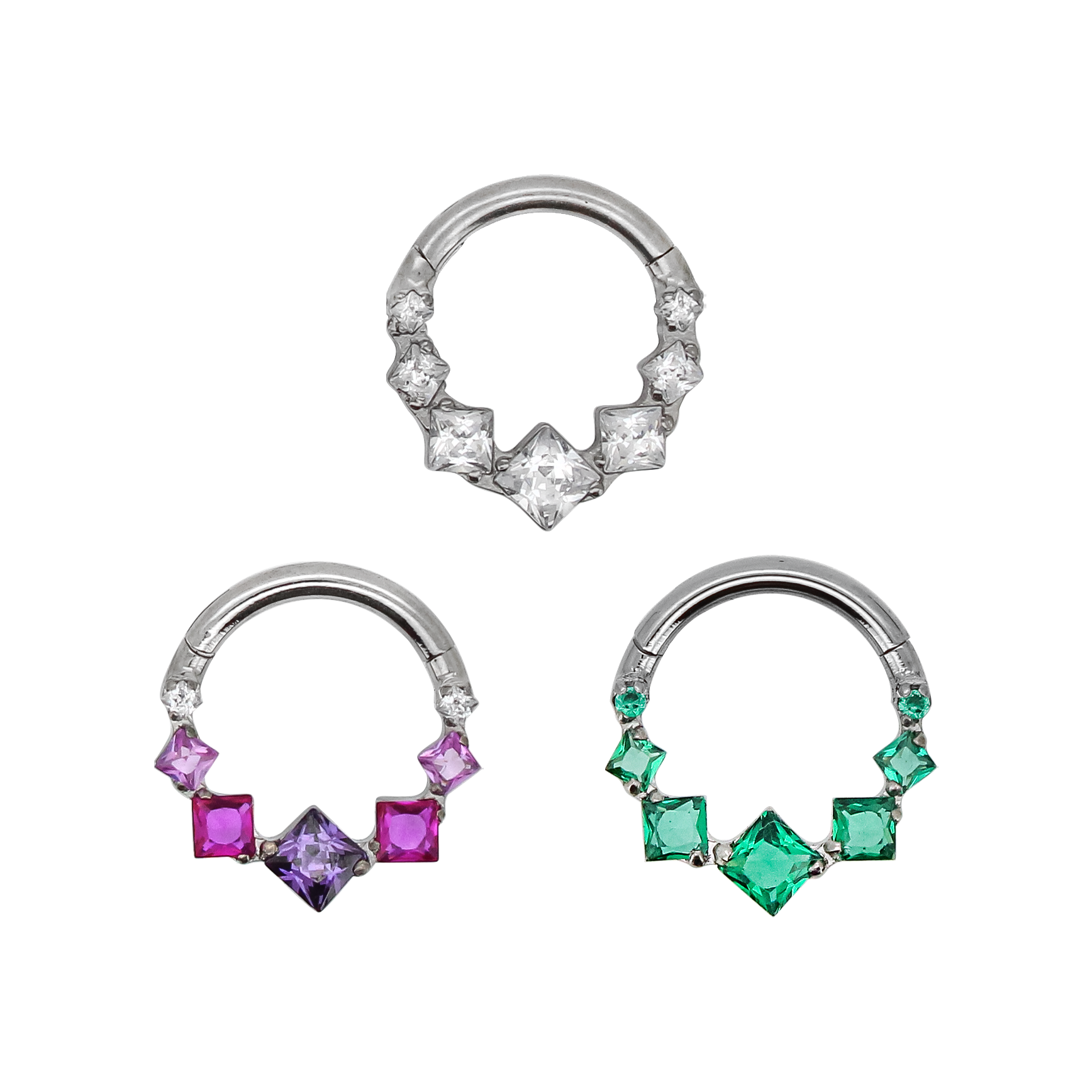 Clicker con decorazione frontale con zirconi quadrati cristallo e colorati.