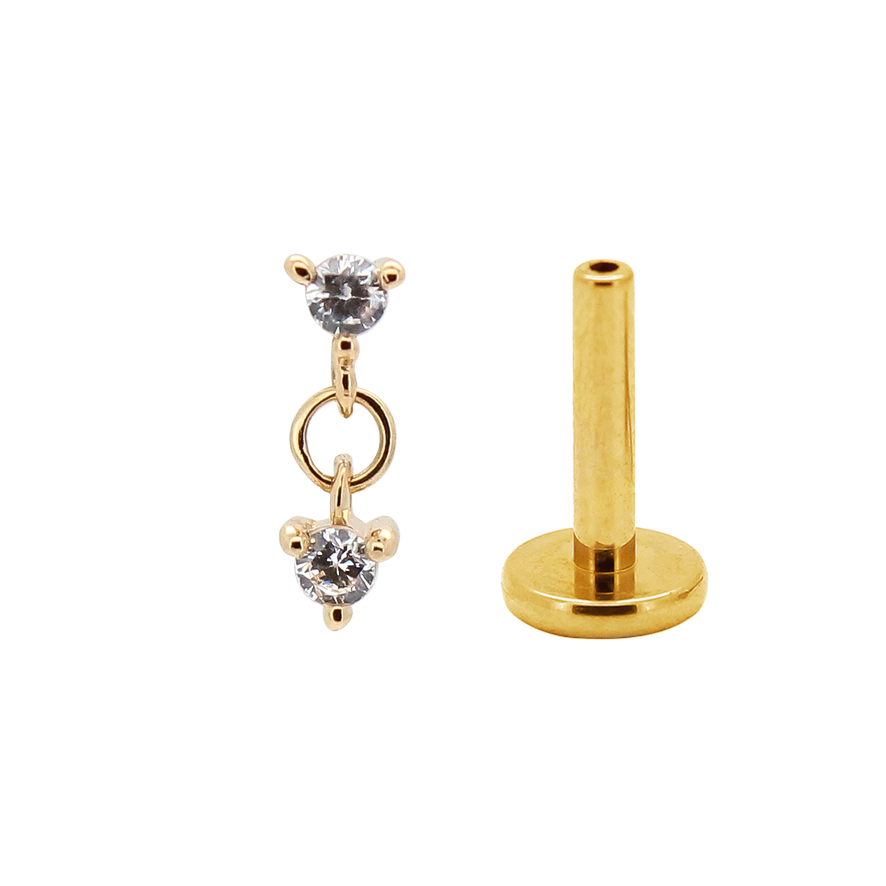 Gioiello con due punti luce tondi di cui uno pendente.