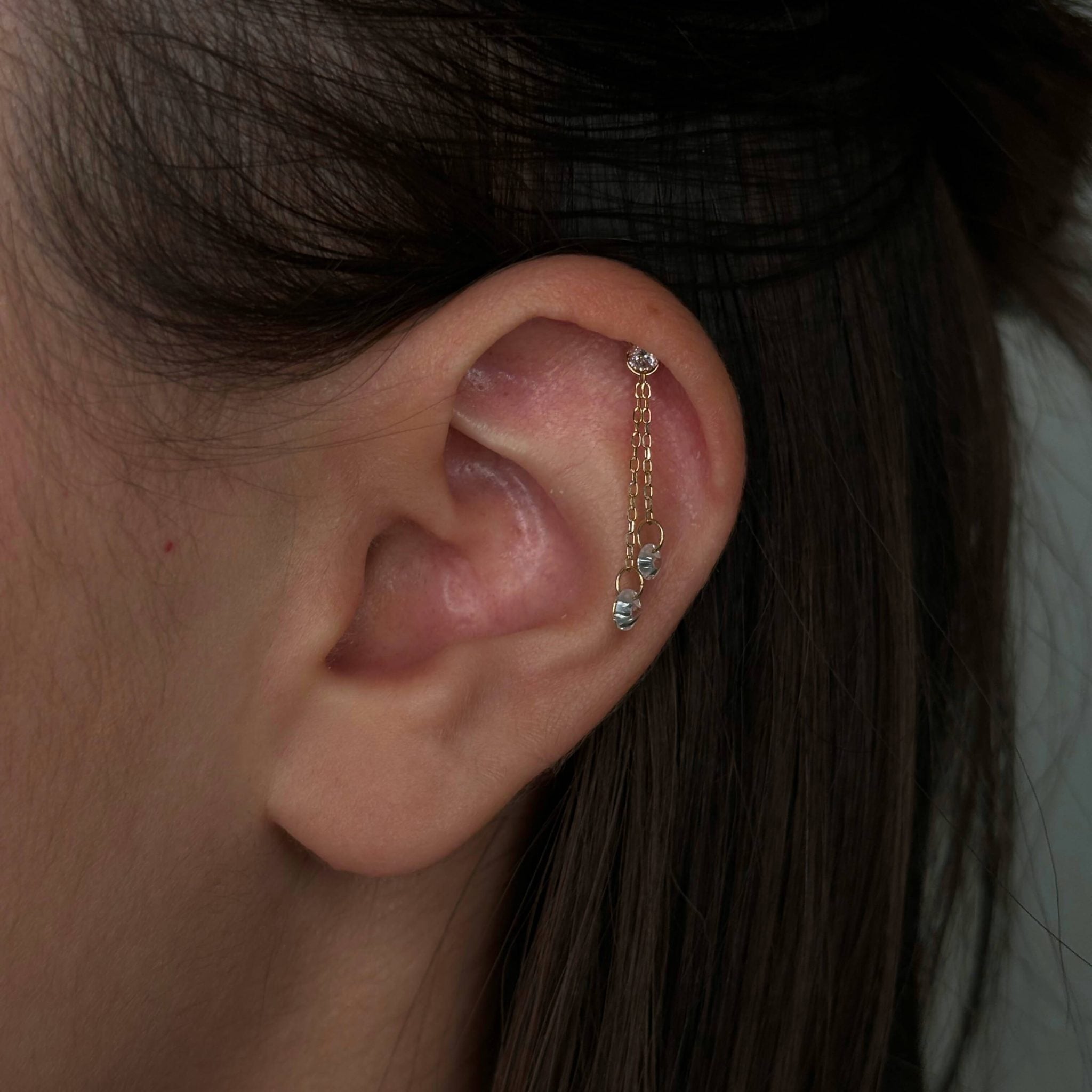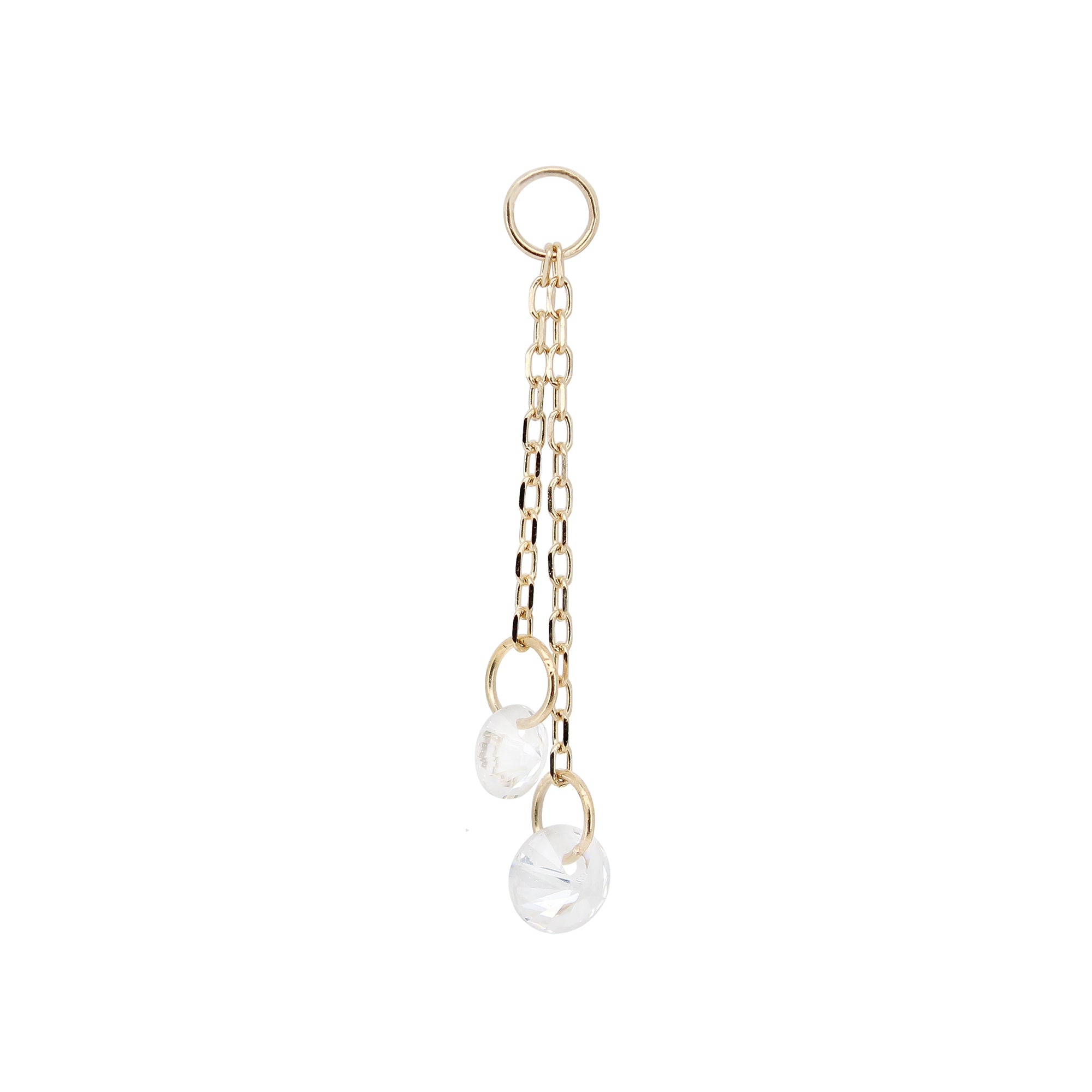 Charm in oro 14Kt con due catene e due Swarovski pendenti.