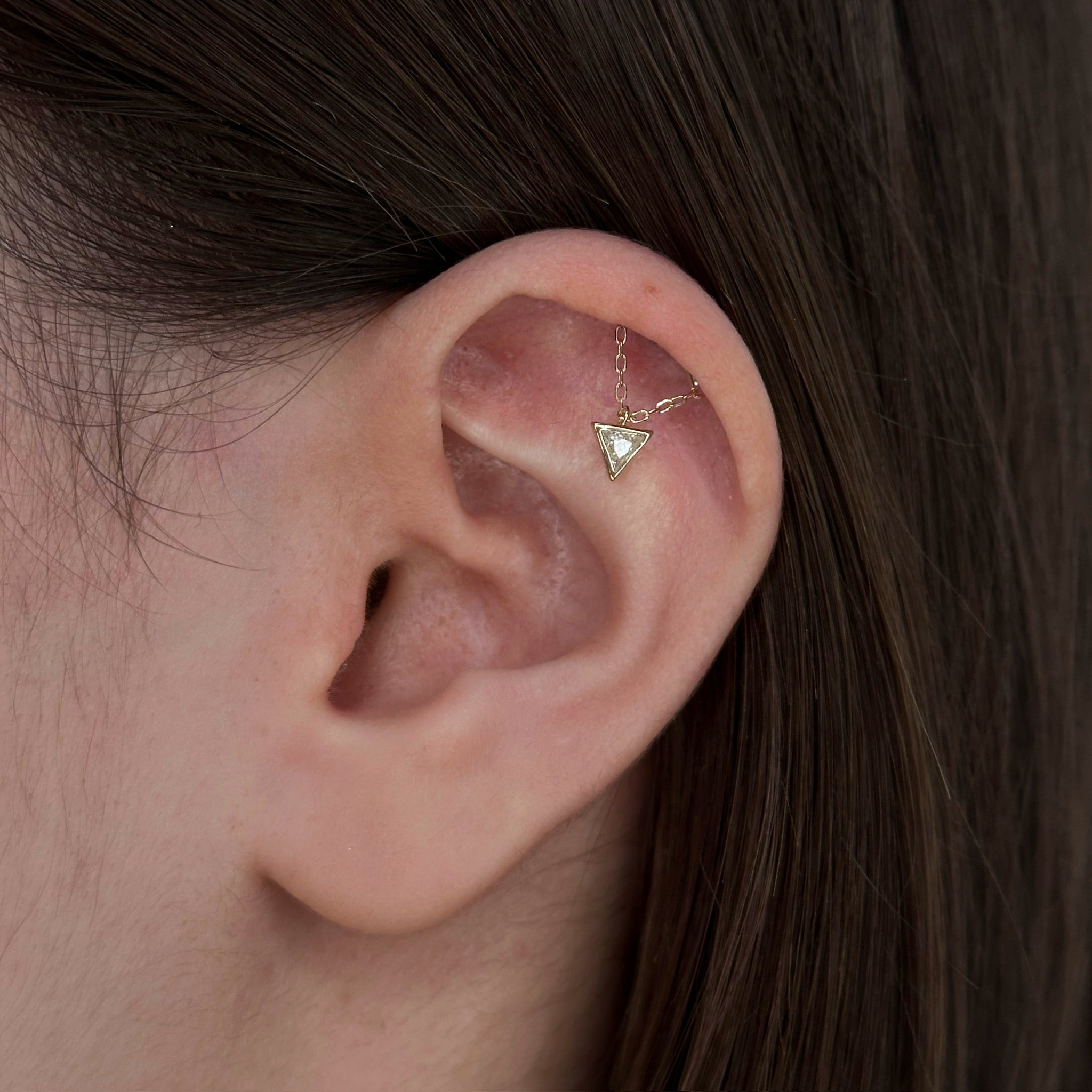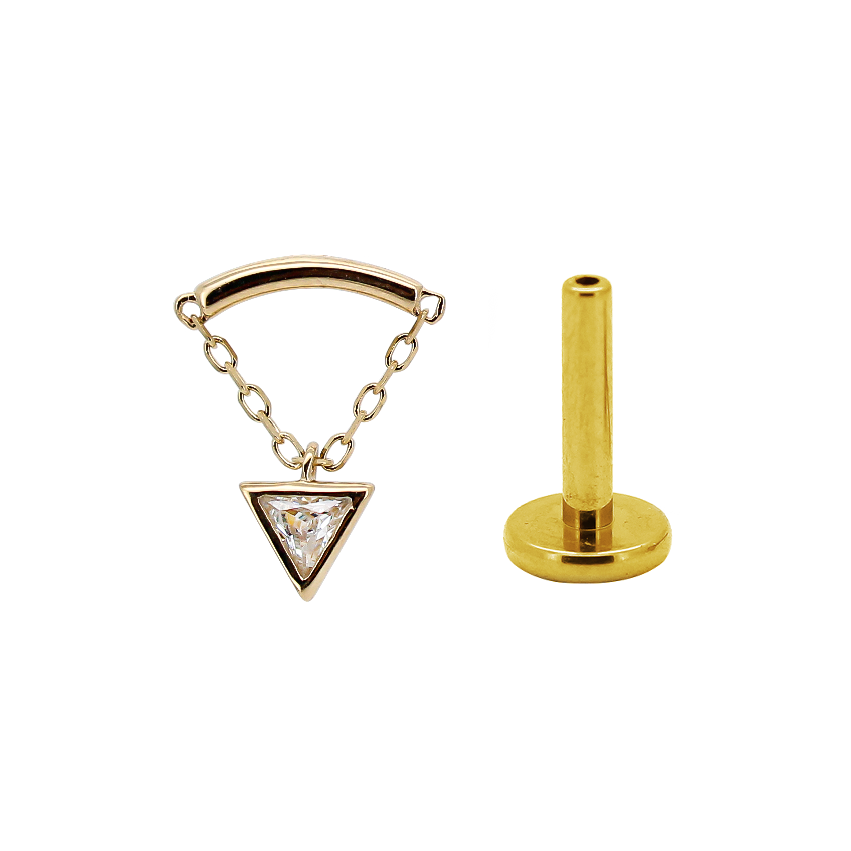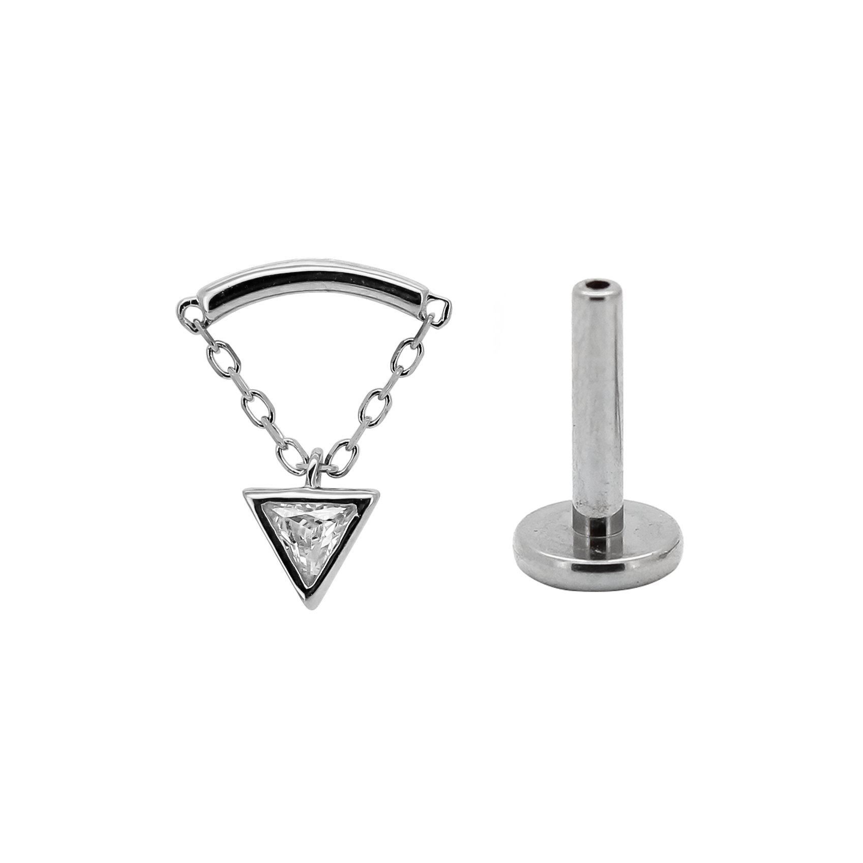 Gioiello ad arco con catena e triangolo con swarovski pendente.
