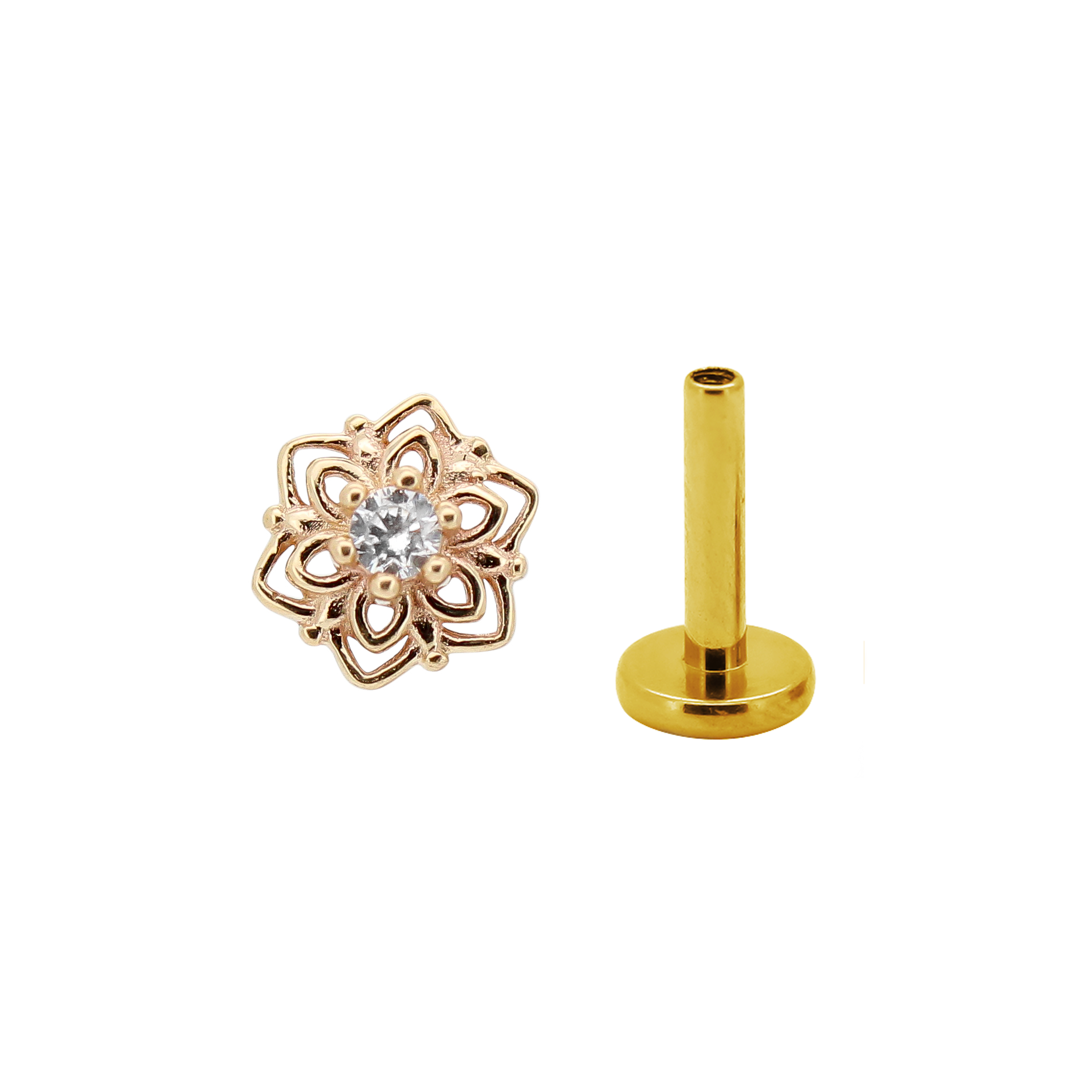 Dotata di una vite esterna, questa chiusura si avvita saldamente per mantenere il piercing ben fissato.
