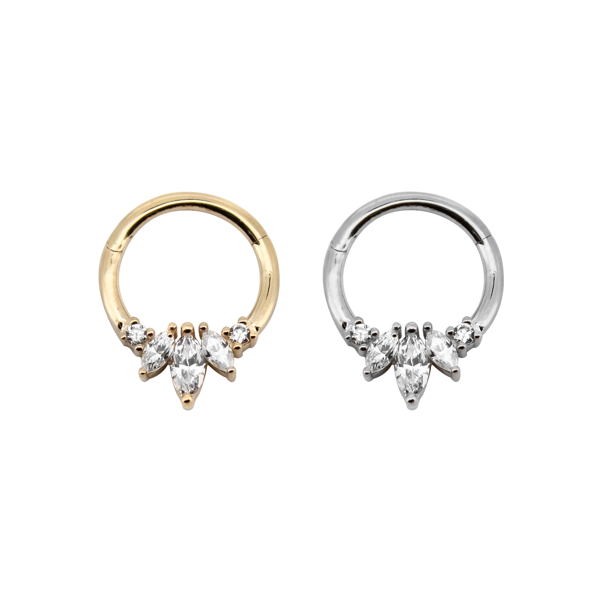 Clicker con Swarovski di diversa dimensione a forma di marquise.
