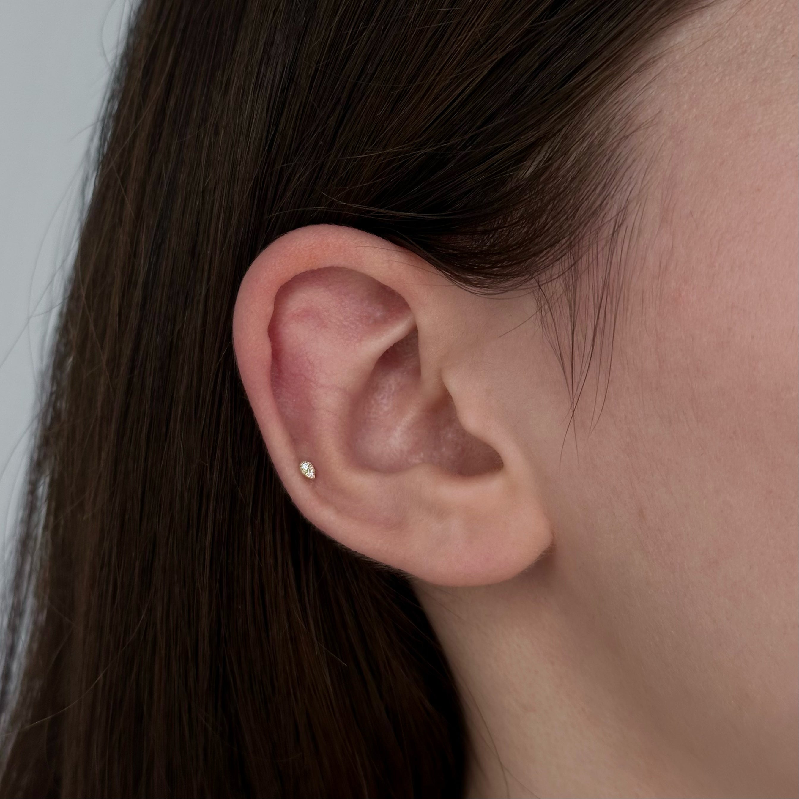 Sara indossa K micro drop in Oro giallo 14Kt su auricle.