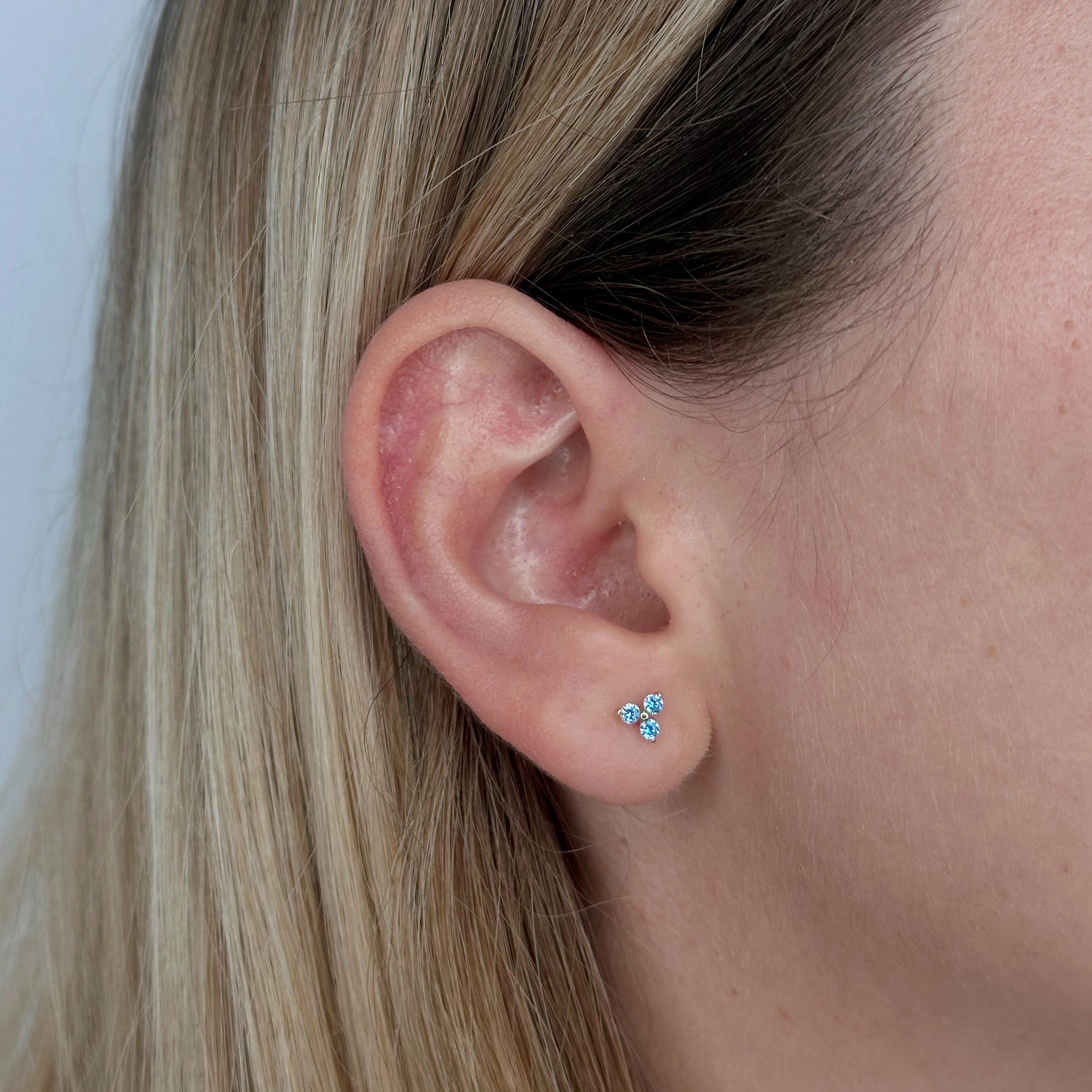 Gioiello in Oro 14Kt con tre swarovski di colore azzurro.