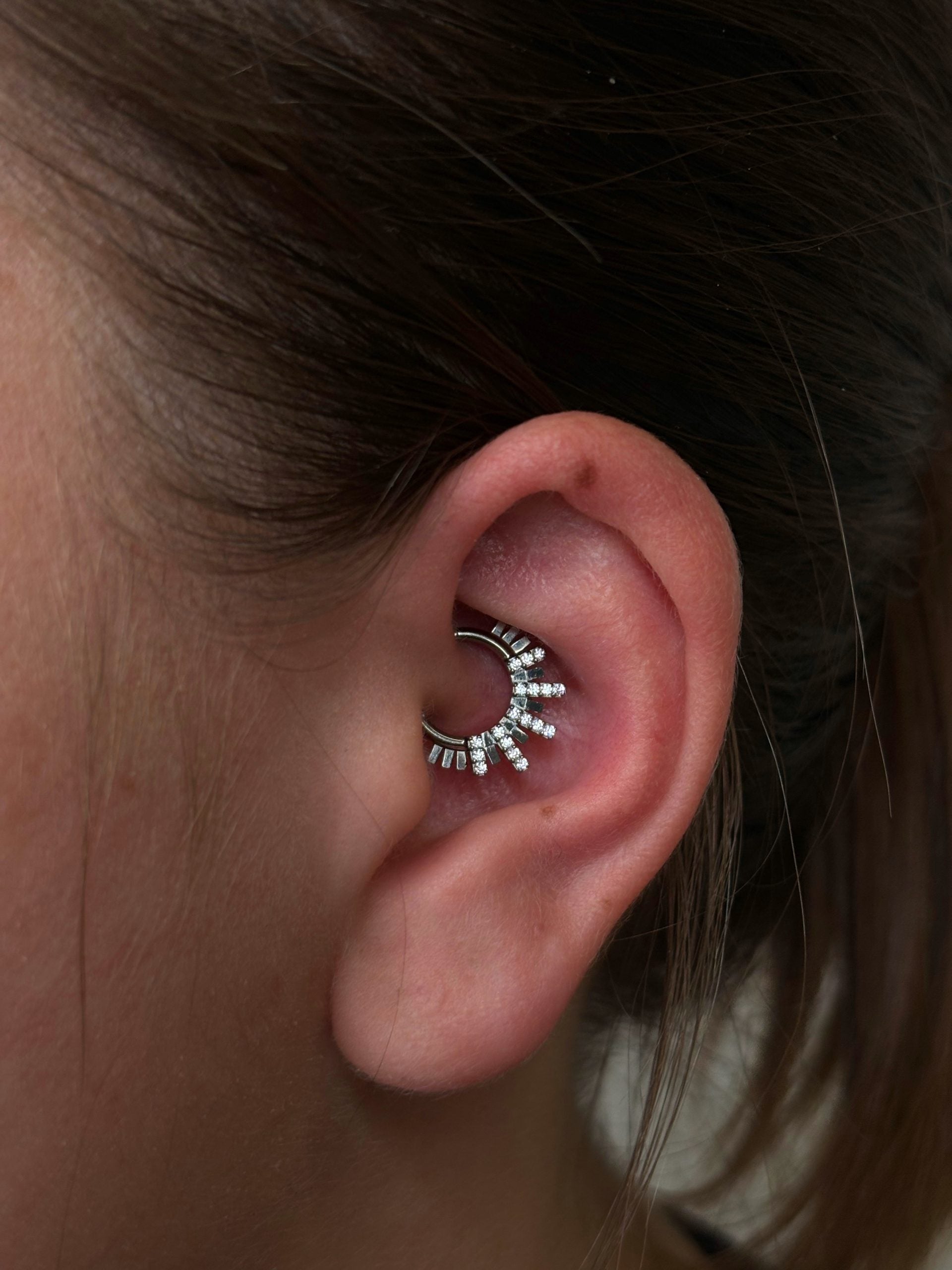 Dotata di una vite esterna, questa chiusura si avvita saldamente per mantenere il piercing ben fissato.
