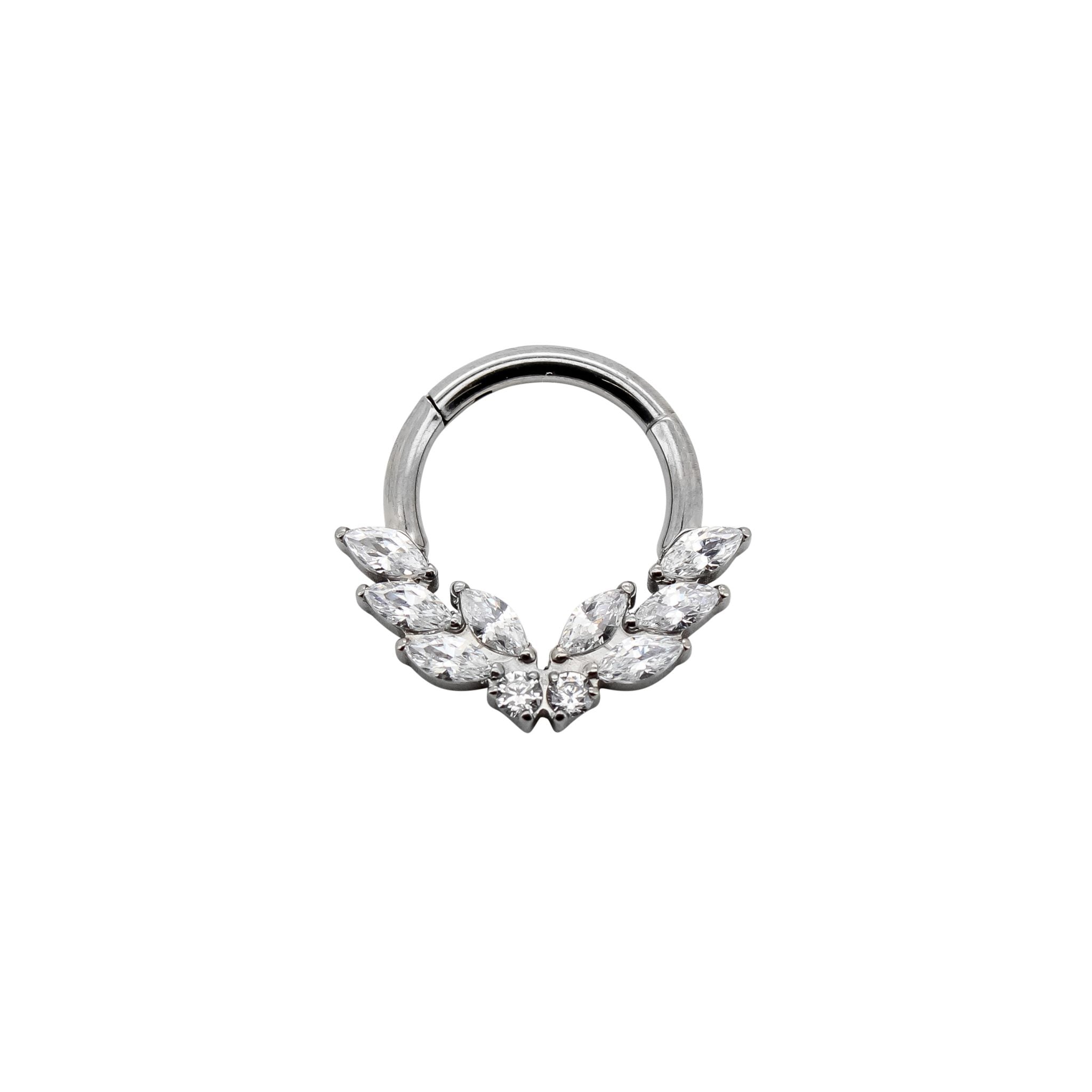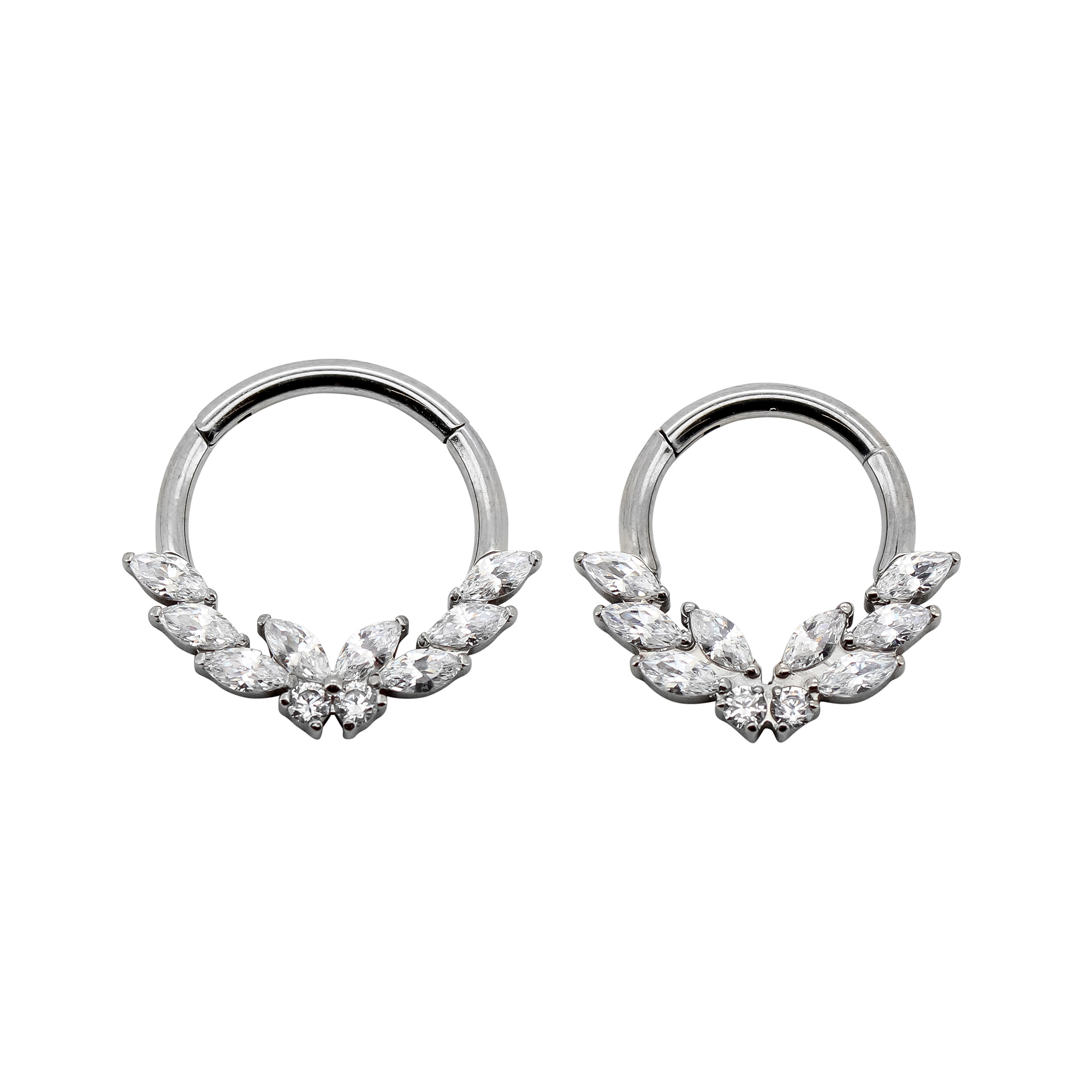 Clicker decorato frontalmente con marquise e farfalla centrale.