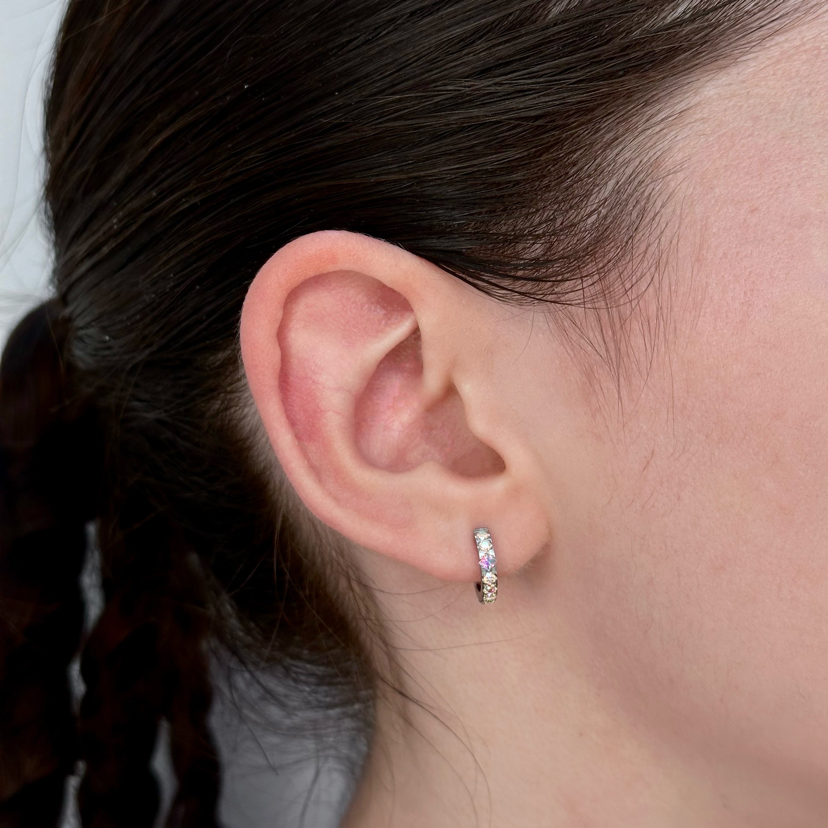 Sara indossa Queen clicker ring da 10 mm su lobo con pietre aurora boreale.