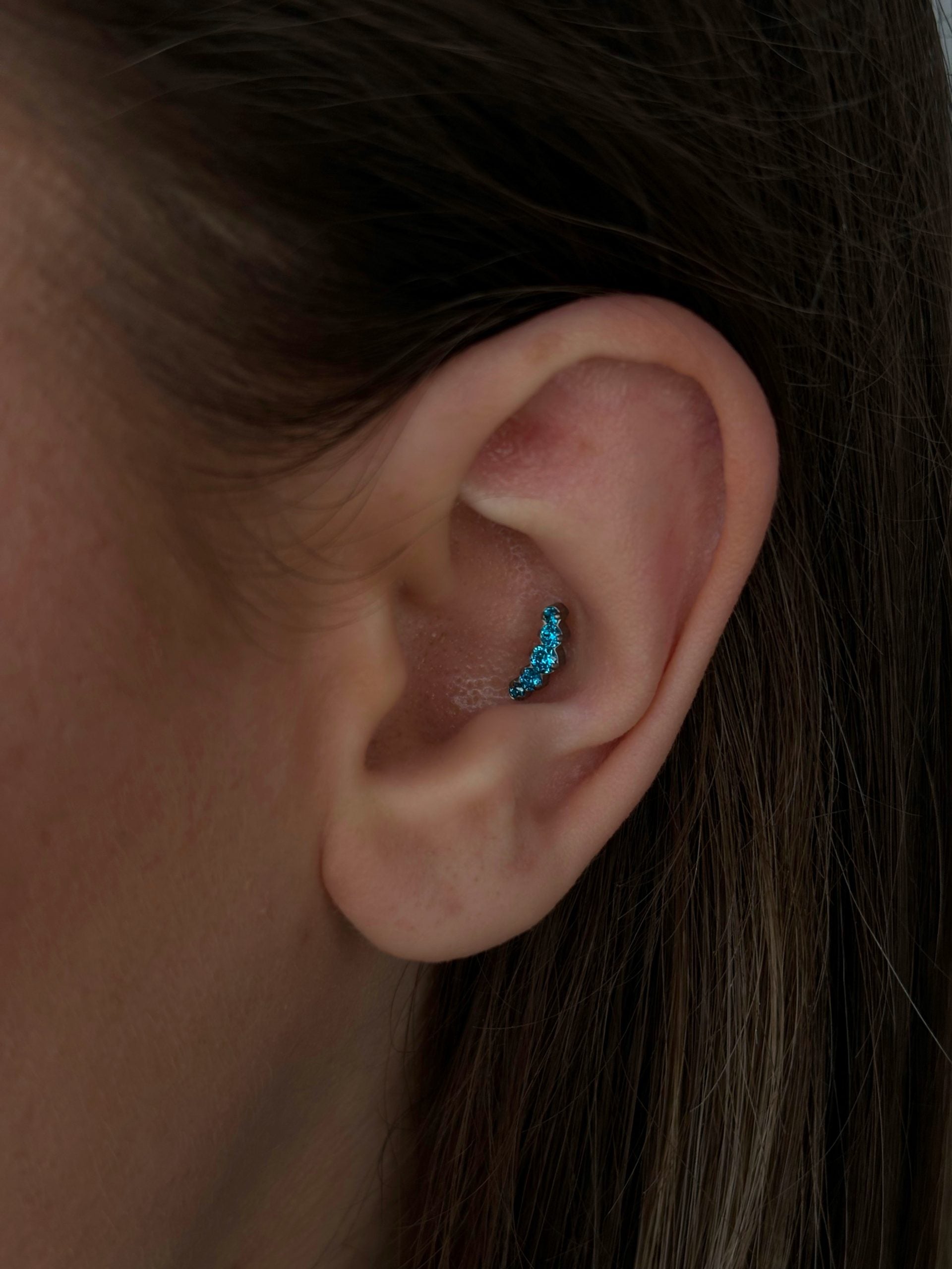 Dotata di una vite esterna, questa chiusura si avvita saldamente per mantenere il piercing ben fissato.