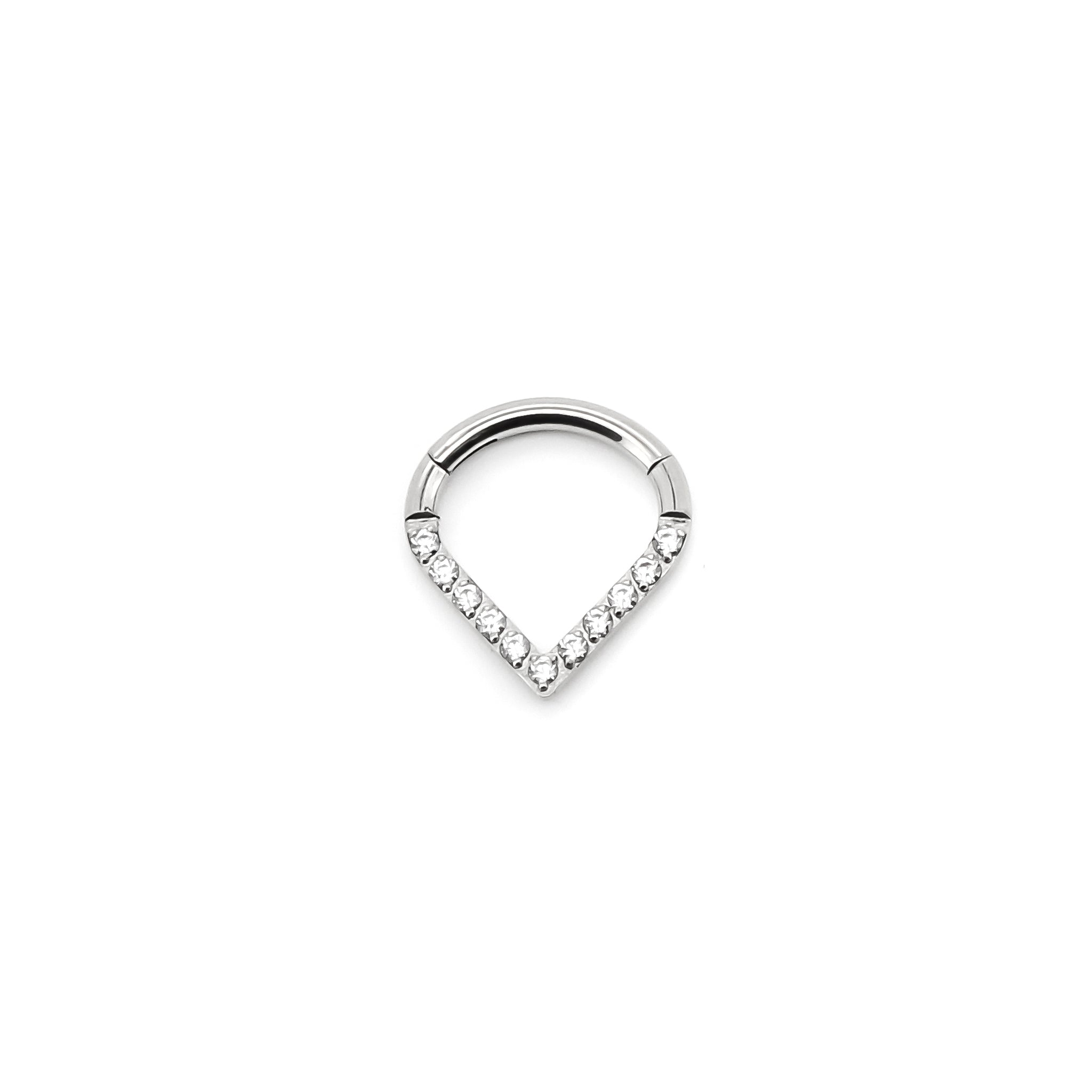 Clicker a forma di goccia con lavorazione frontale di zirconi cristallo.