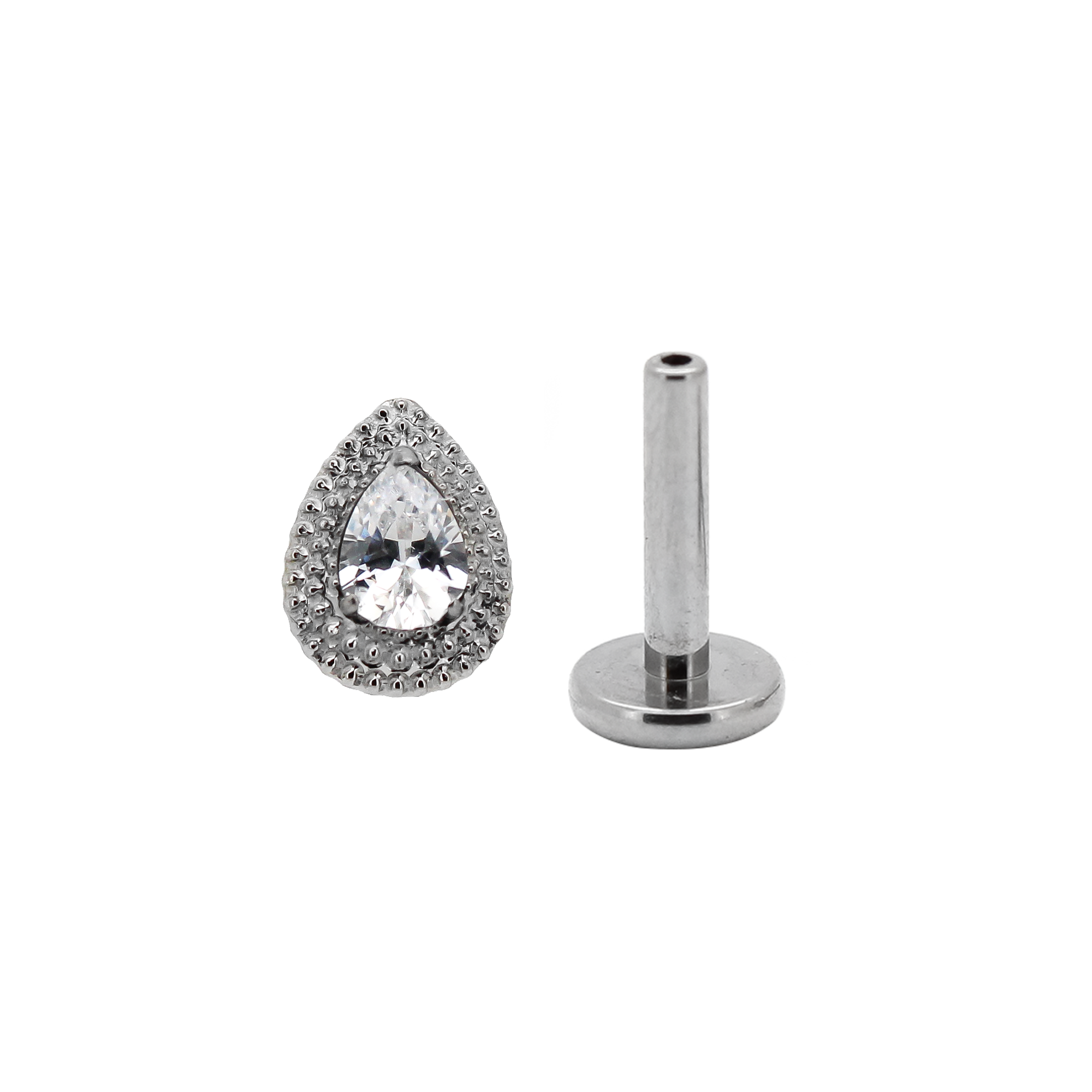 Gioiello a forma di goccia con zircone o pietra centrale a forma di goccia.