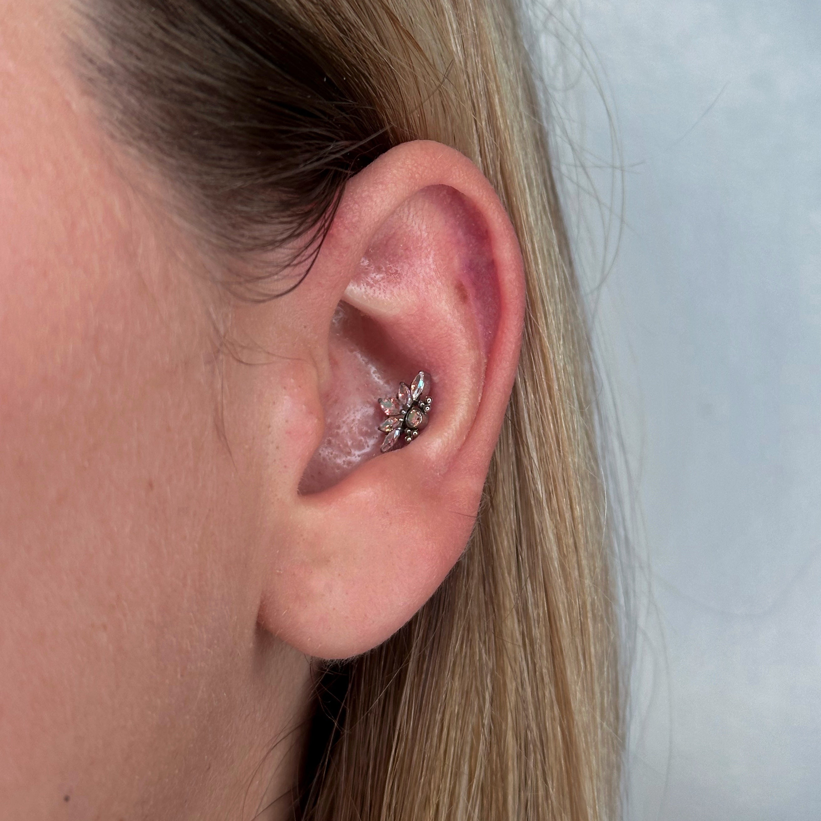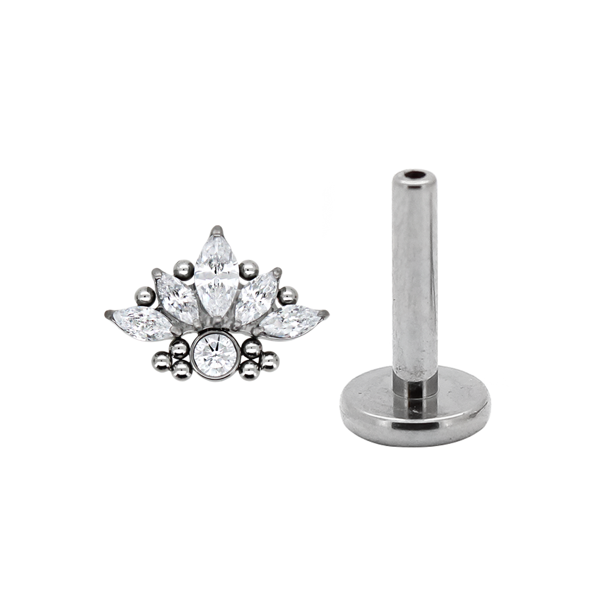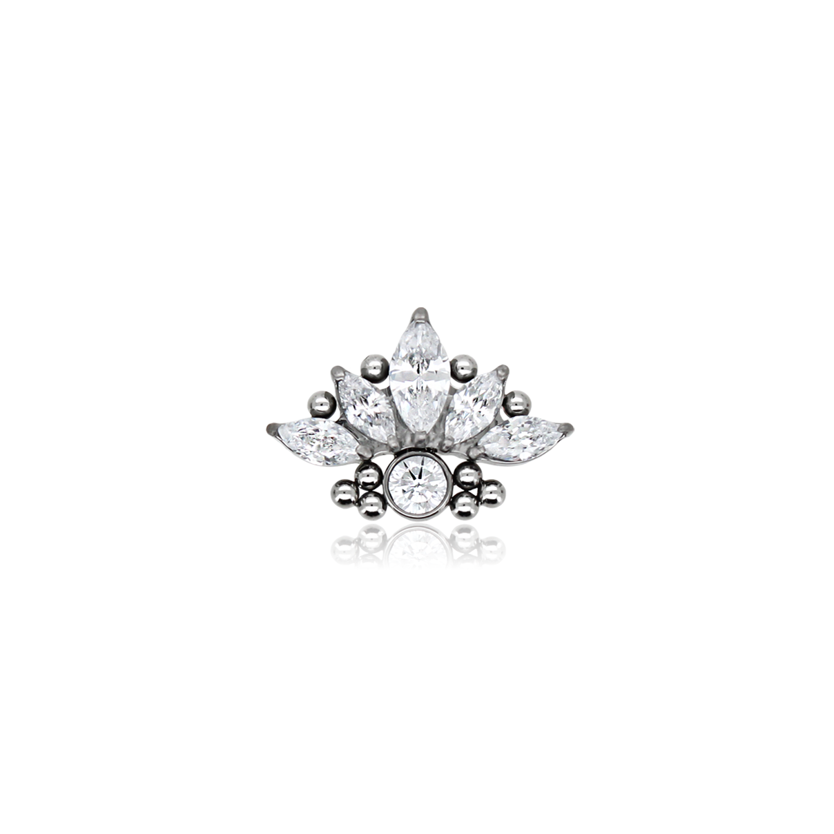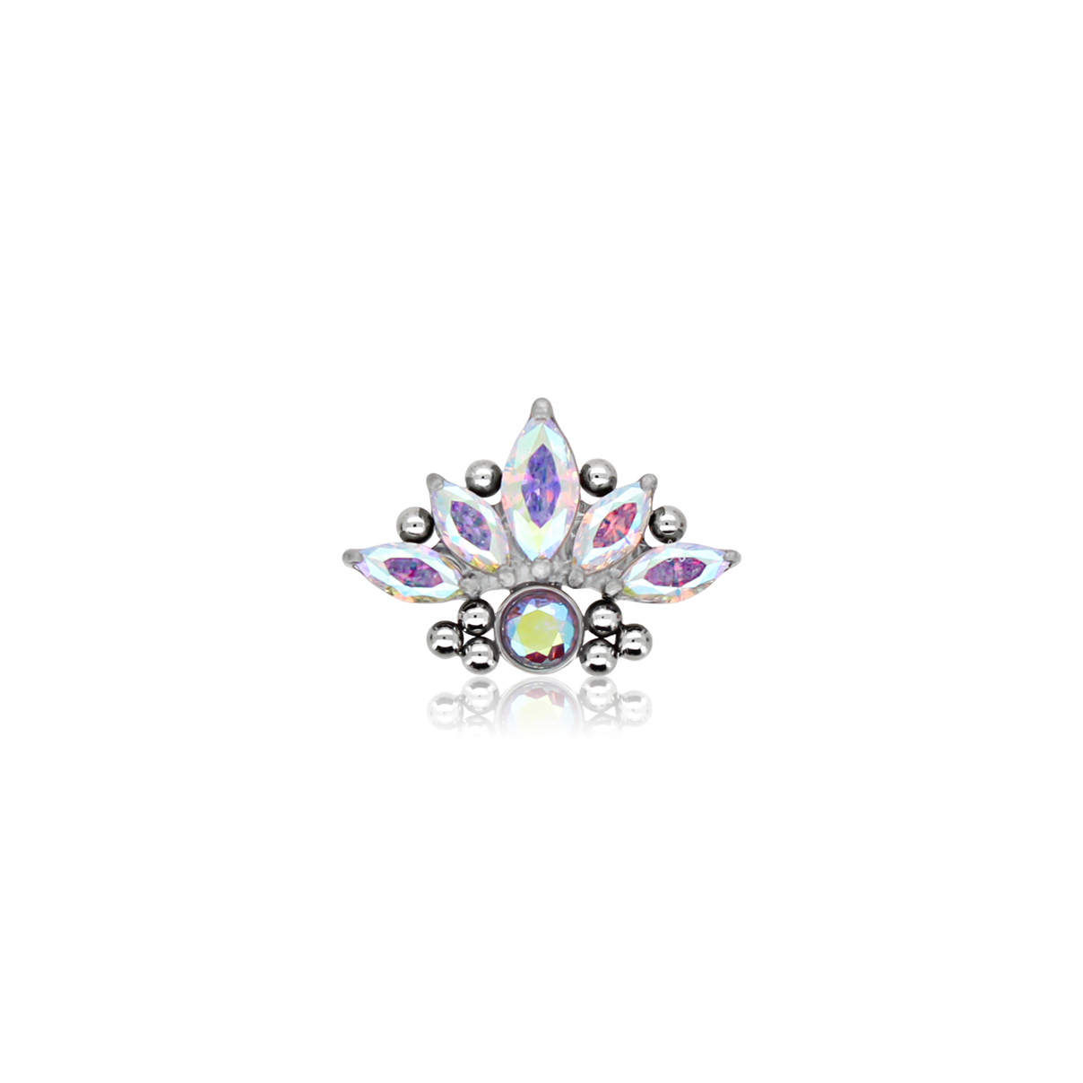 Gioiello a forma di marquise cristallo o aurora boreale adornato da piccole sfere in titanio.