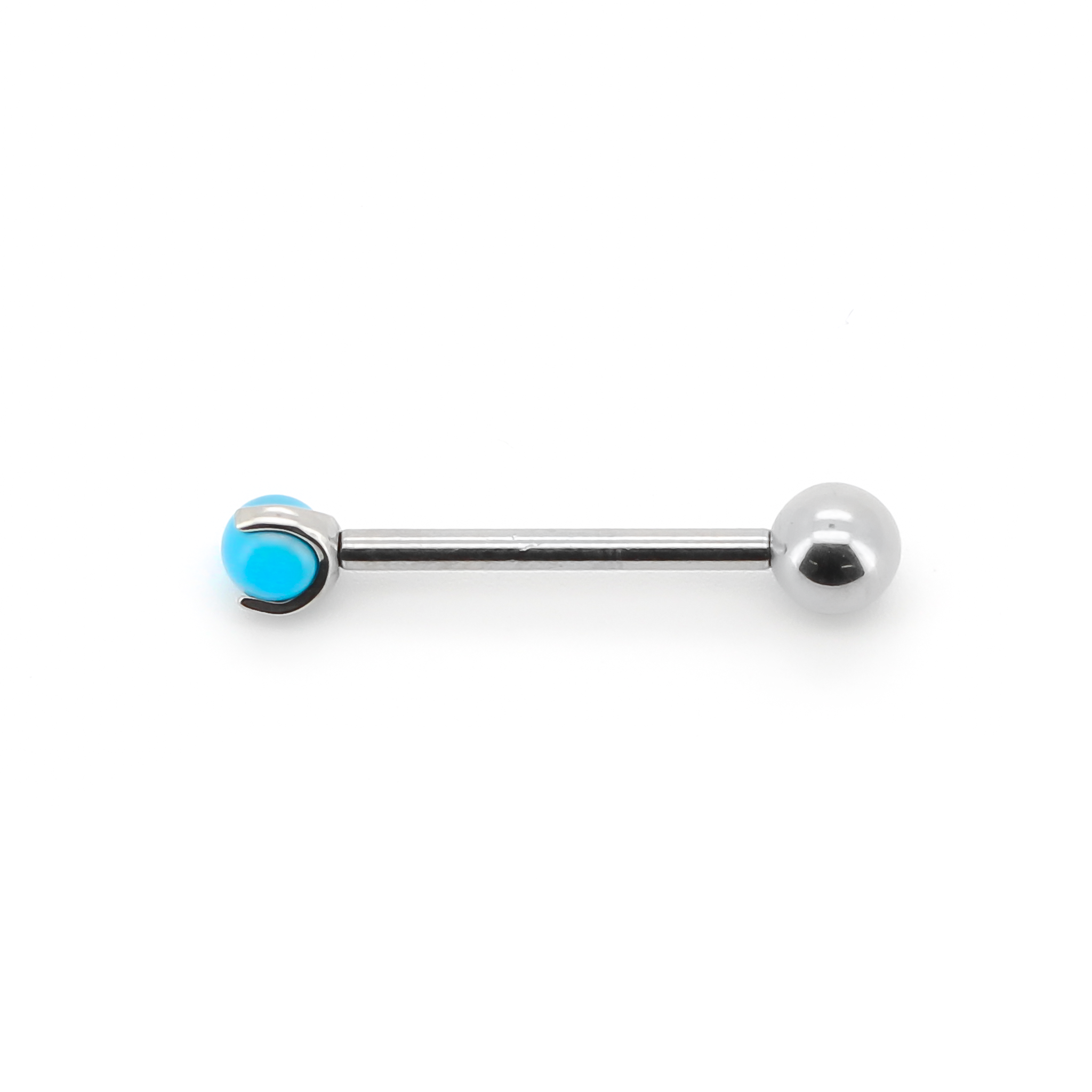 Piercing per lingua con sfera azzurra.