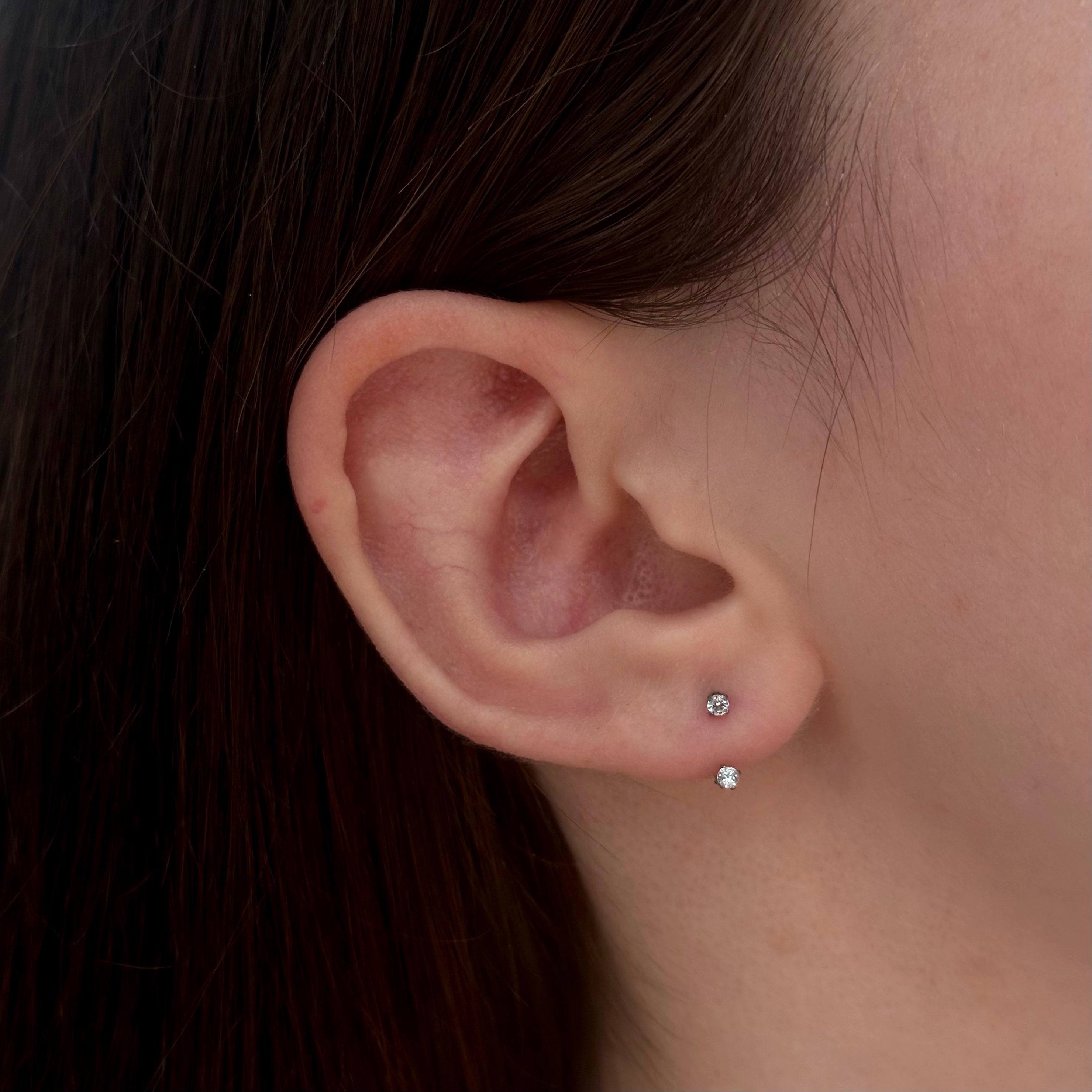 Un gioiello composto molto versatile. Lo vedi indossato in foto su nostril e primo lobo e in video su secondo lobo.