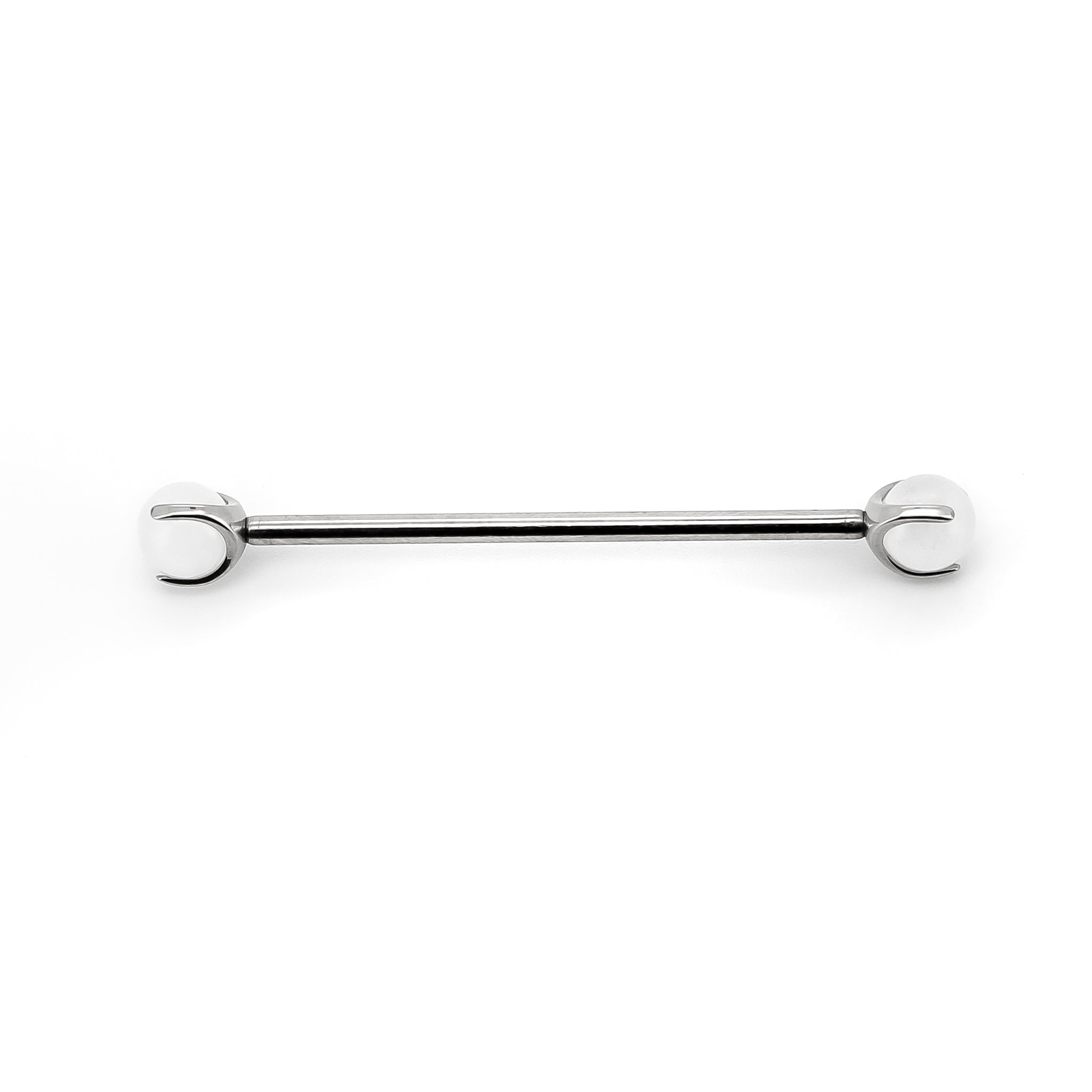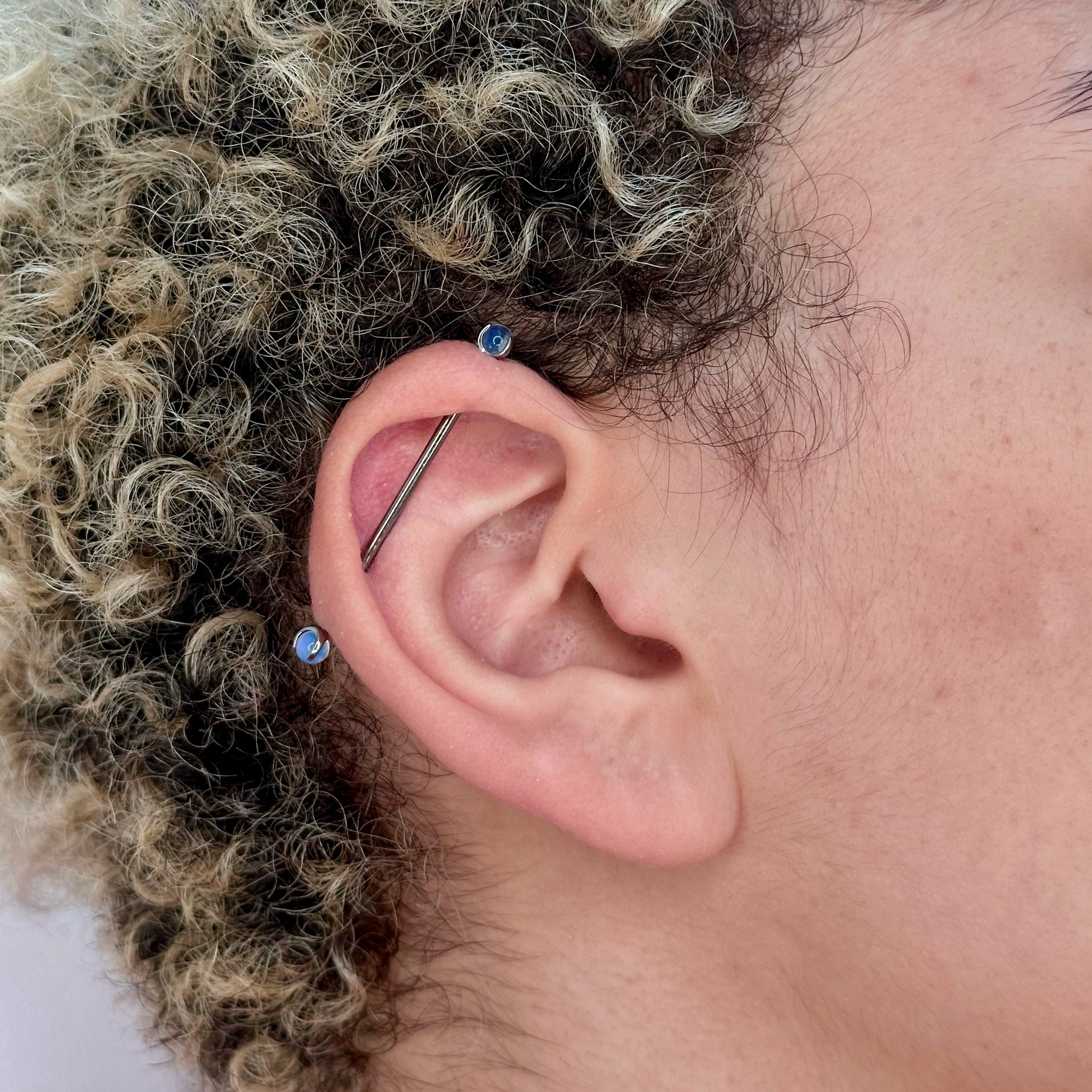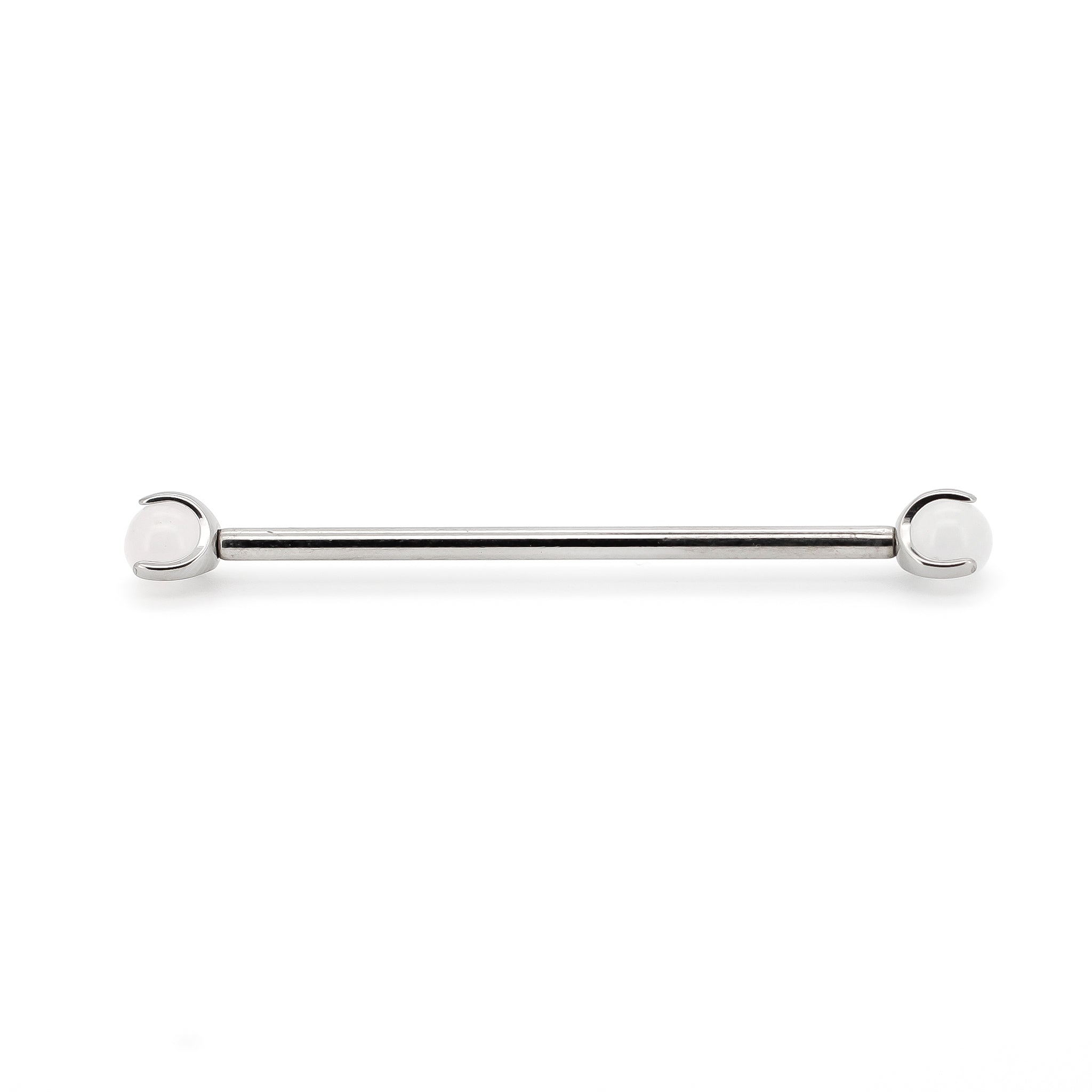 Piercing per industrial con pietra sferica bianca.