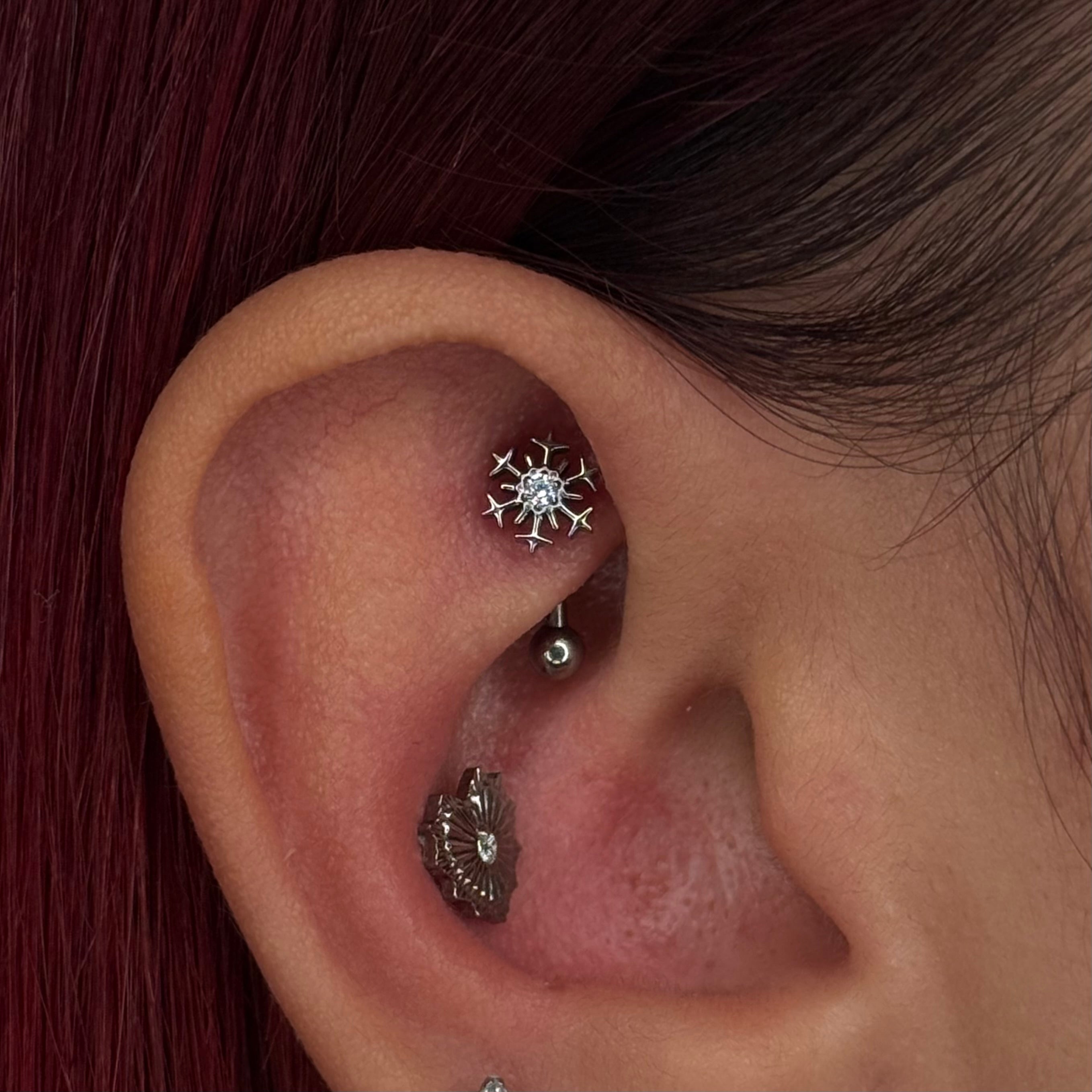 Dotata di una vite esterna, questa chiusura si avvita saldamente per mantenere il piercing ben fissato.