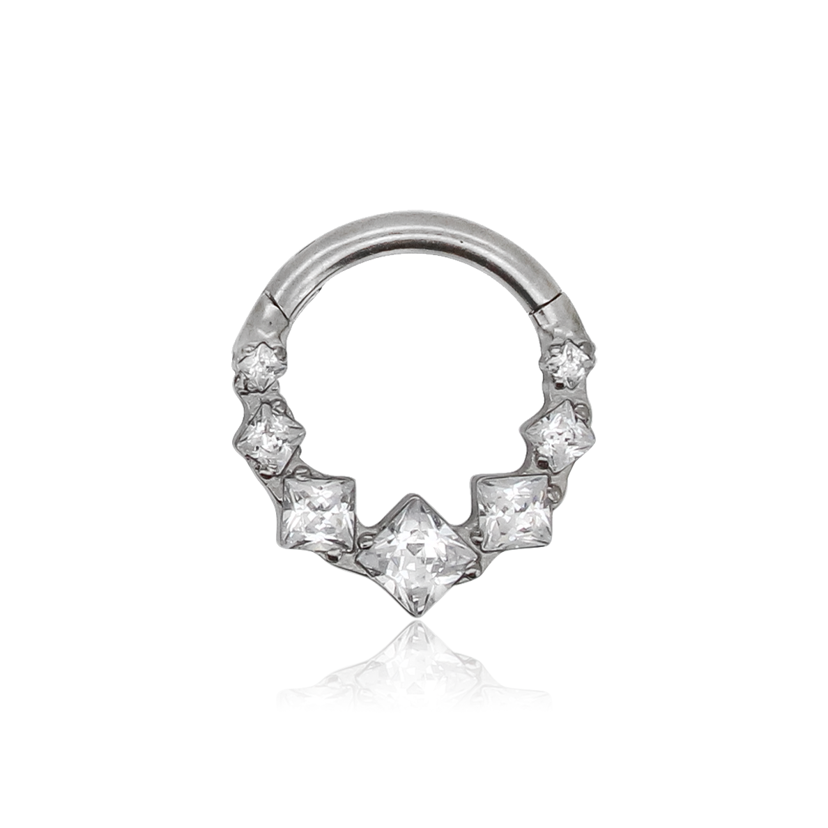 Clicker con decorazione frontale con zirconi quadrati cristallo e colorati.